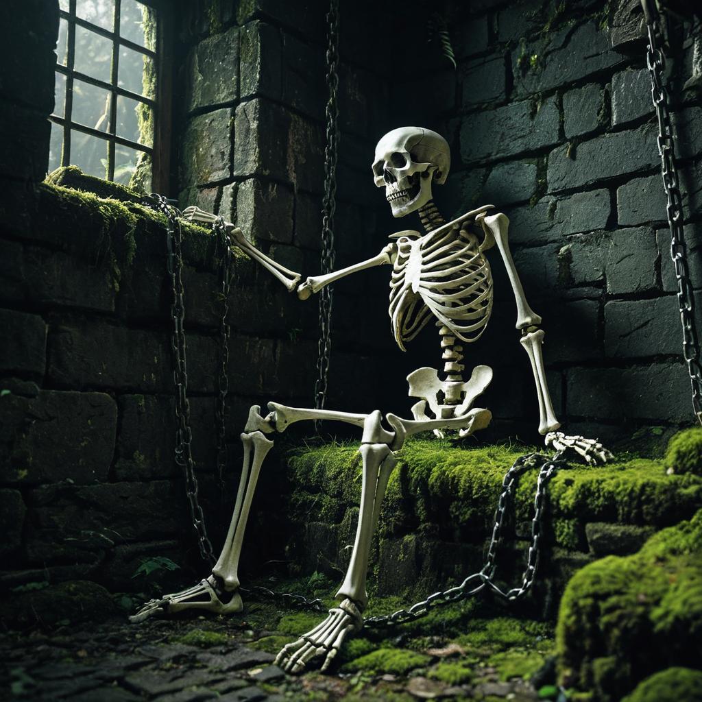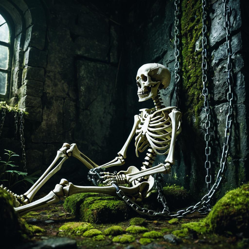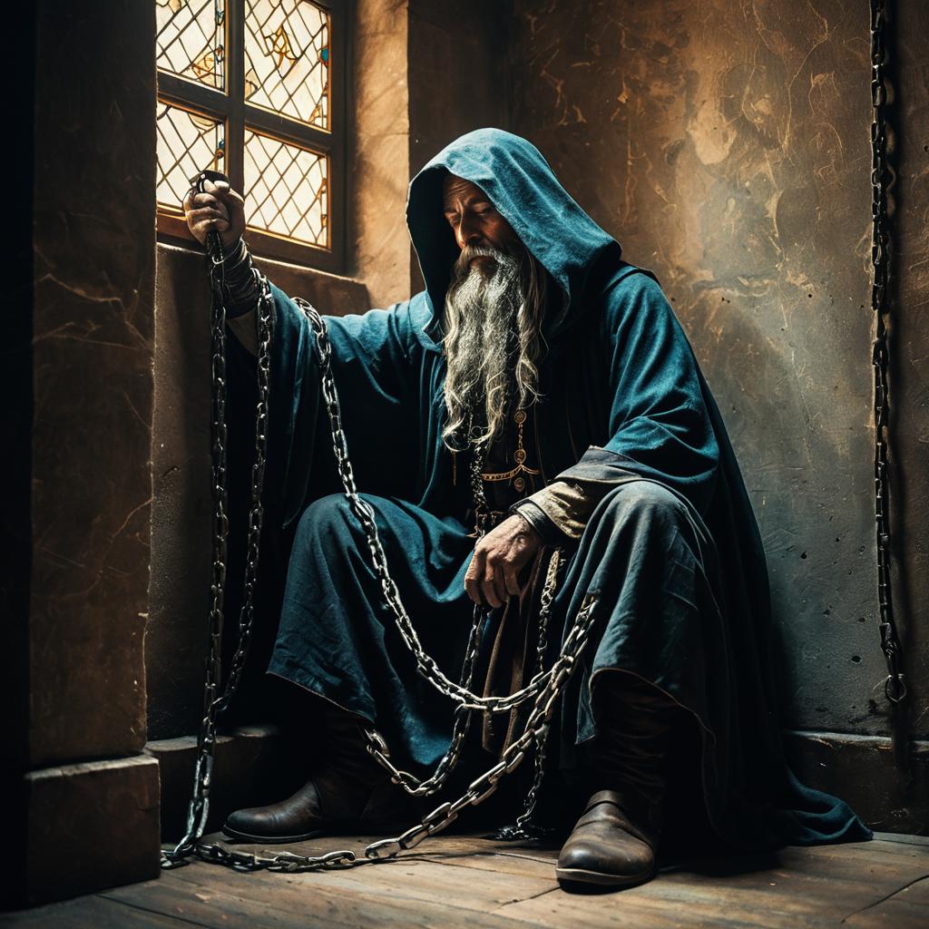 A dragon chained up in a corner, moss and ancient atmosphere, with dramatic lighting; inspired by Hayao Miyazaki, Artgerm Lau, Greg Rutkowski, digital art, trending on ArtStation