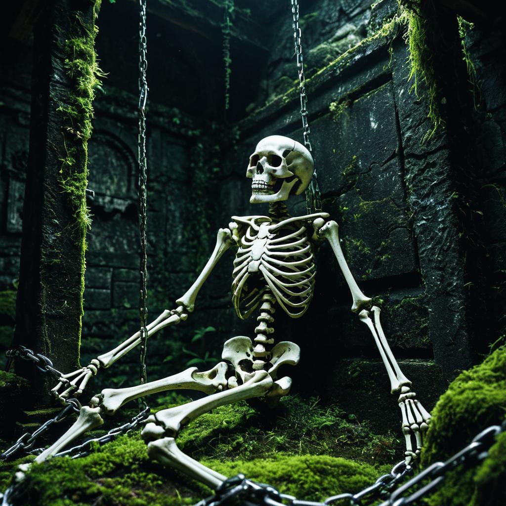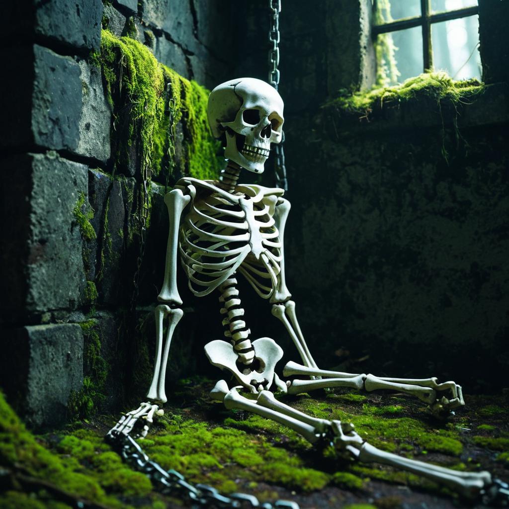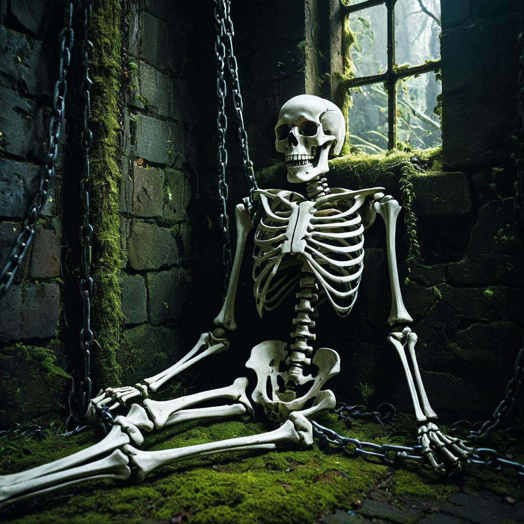 A dragon chained up in a corner, moss and ancient atmosphere, with dramatic lighting; inspired by Hayao Miyazaki, Artgerm Lau, Greg Rutkowski, digital art, trending on ArtStation