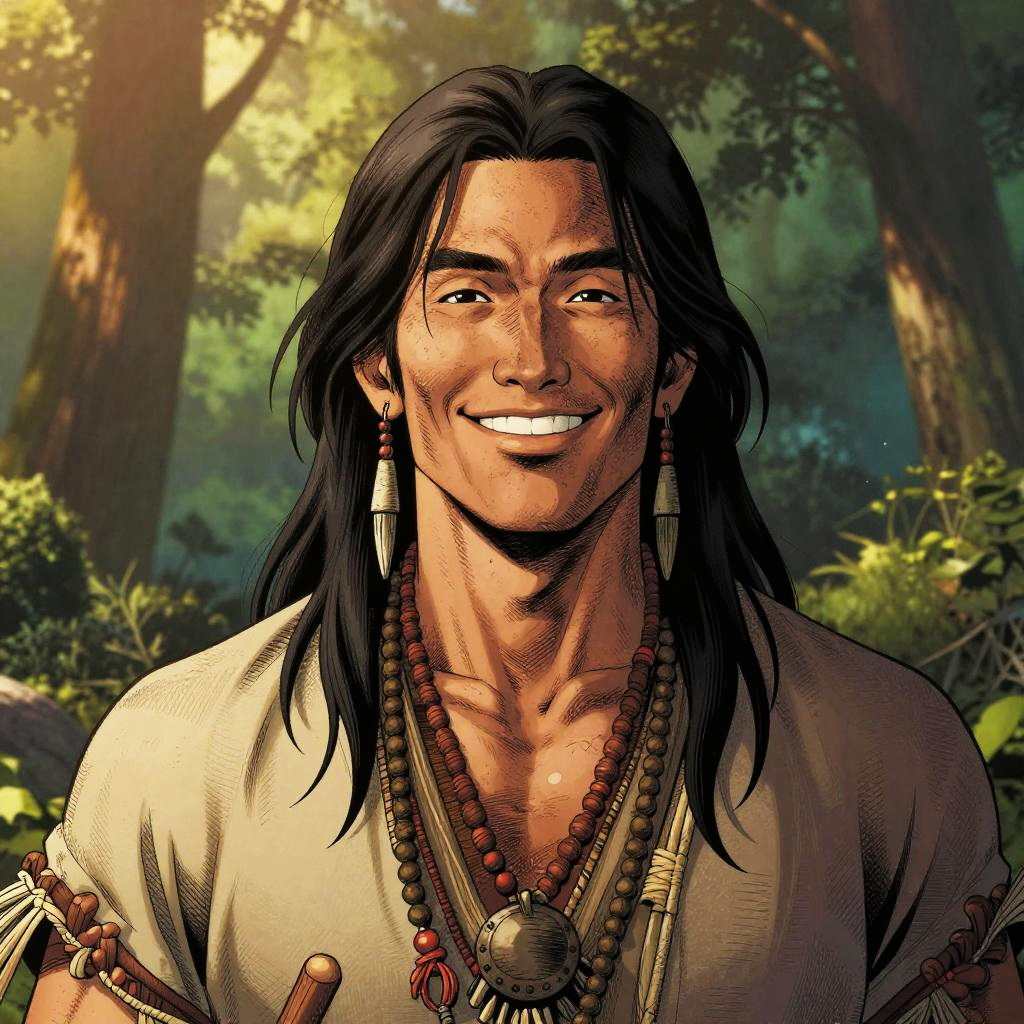 Comic artwork of underwater explorer, portrait, smiling, happy, coral reef background, filtered deep sea light, crosshatching, 2D, Sharp, Detailed, HD, HDR, High Quality, High Resolution, Masterpiece