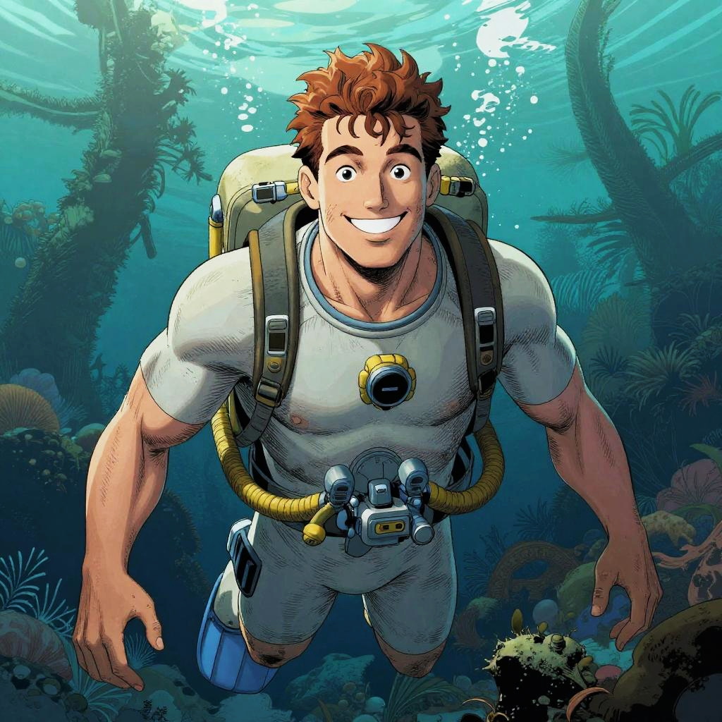 Happy Underwater Explorer Comic Portrait