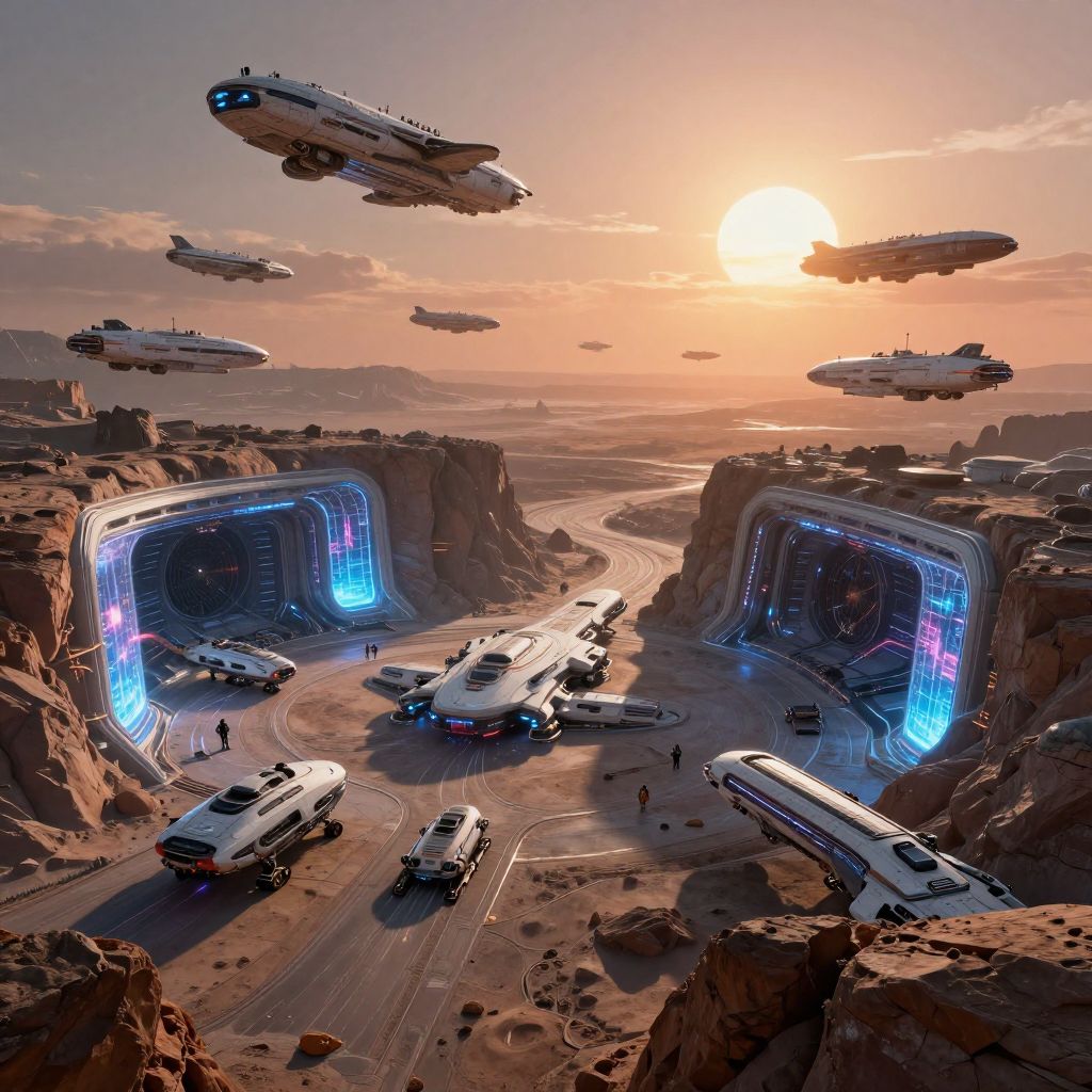 Futuristic Alien Spaceport at Dusk