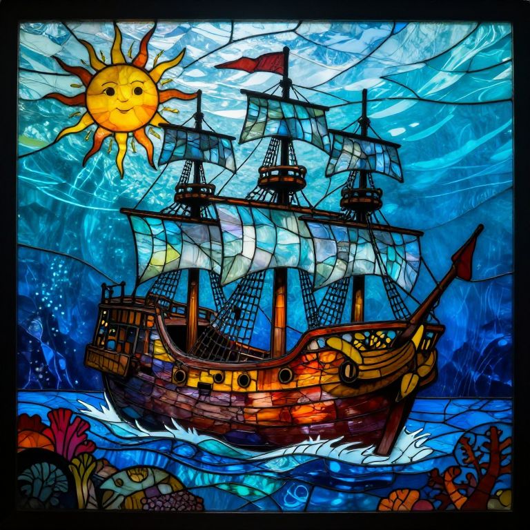 Underwater Stained Glass Pirate Ship