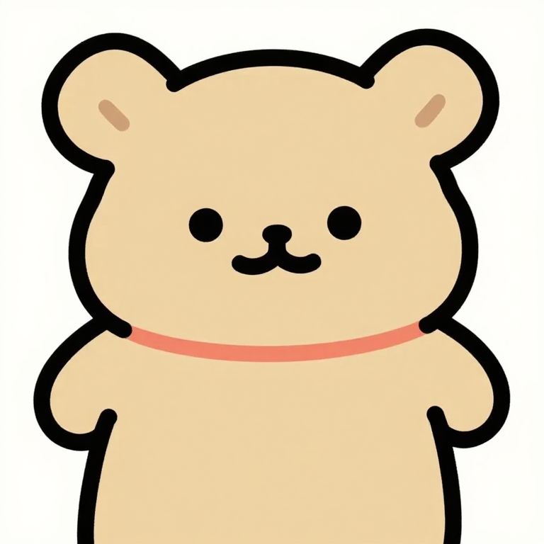 Simple digital art portraying a cute cartoon character with basic shapes and bold outlines, using minimal shading and a gentle color scheme to express friendliness and simplicity