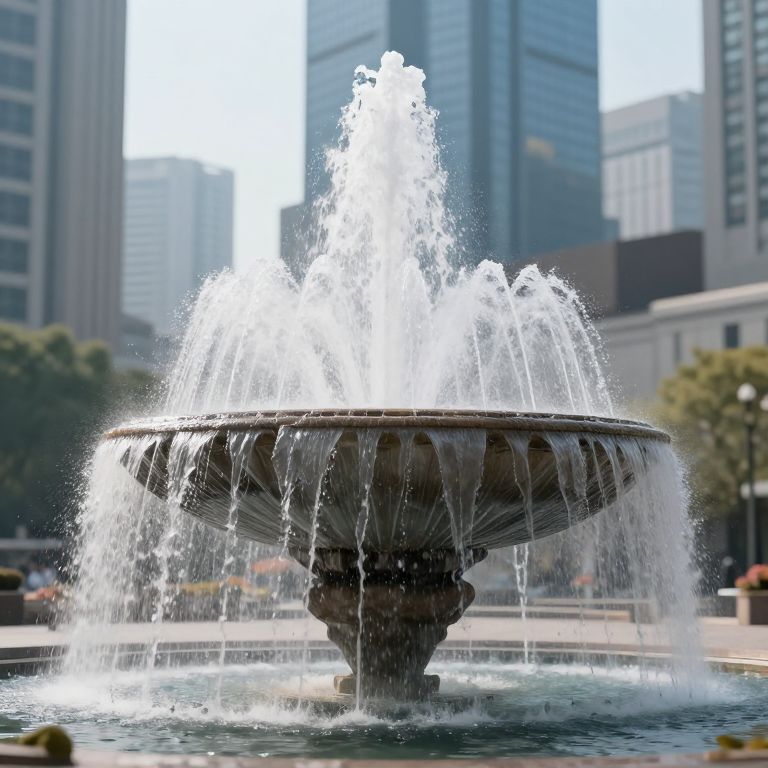 Levitating City with Upward Fountain