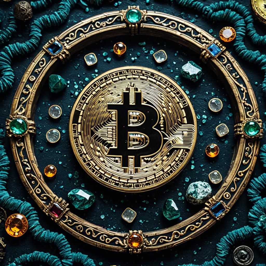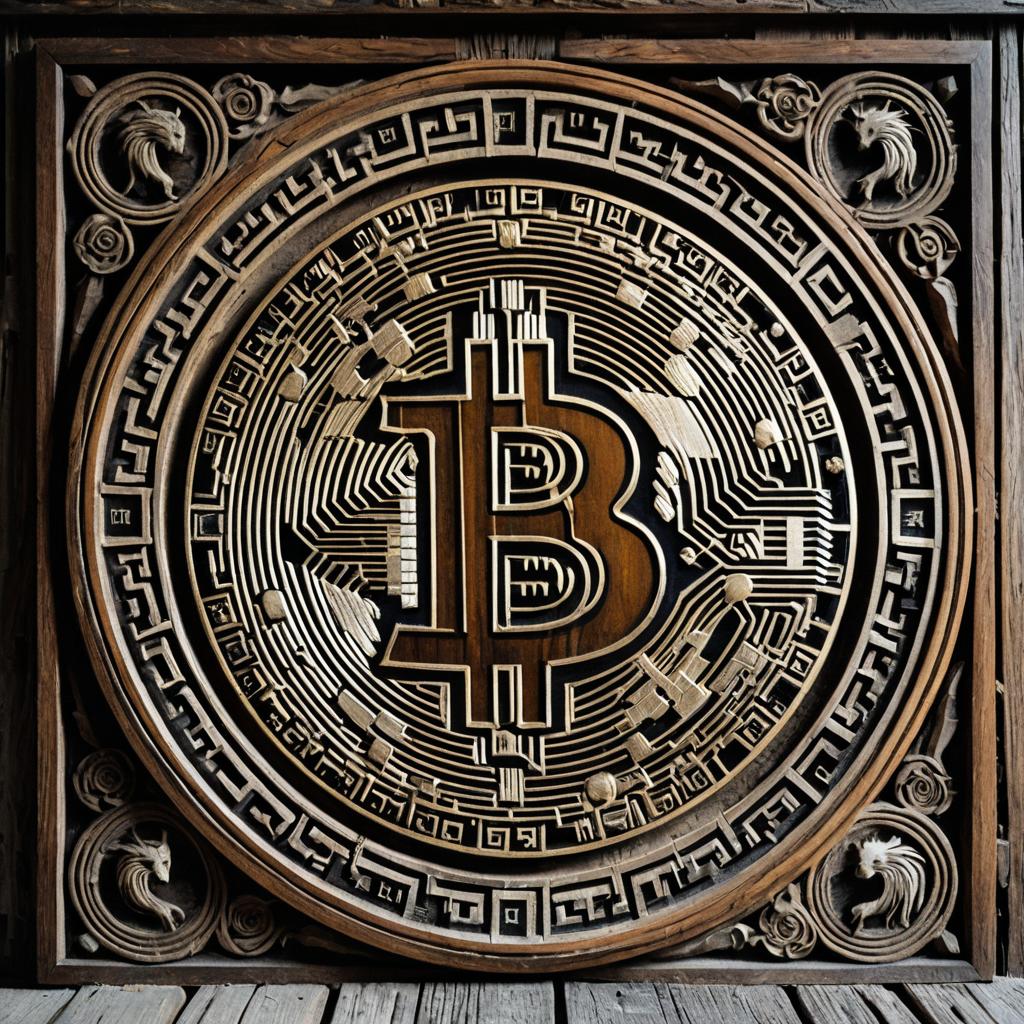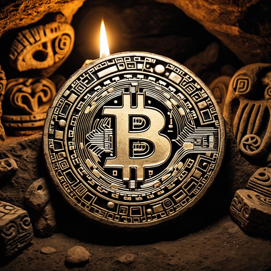 Artwork of bitcoin logo as an ancient artifact, hammered onto a rusted iron forge plate, surrounded by fiery alchemical signs pulsating faintly, set in an old blacksmith’s workshop cloaked in shadow