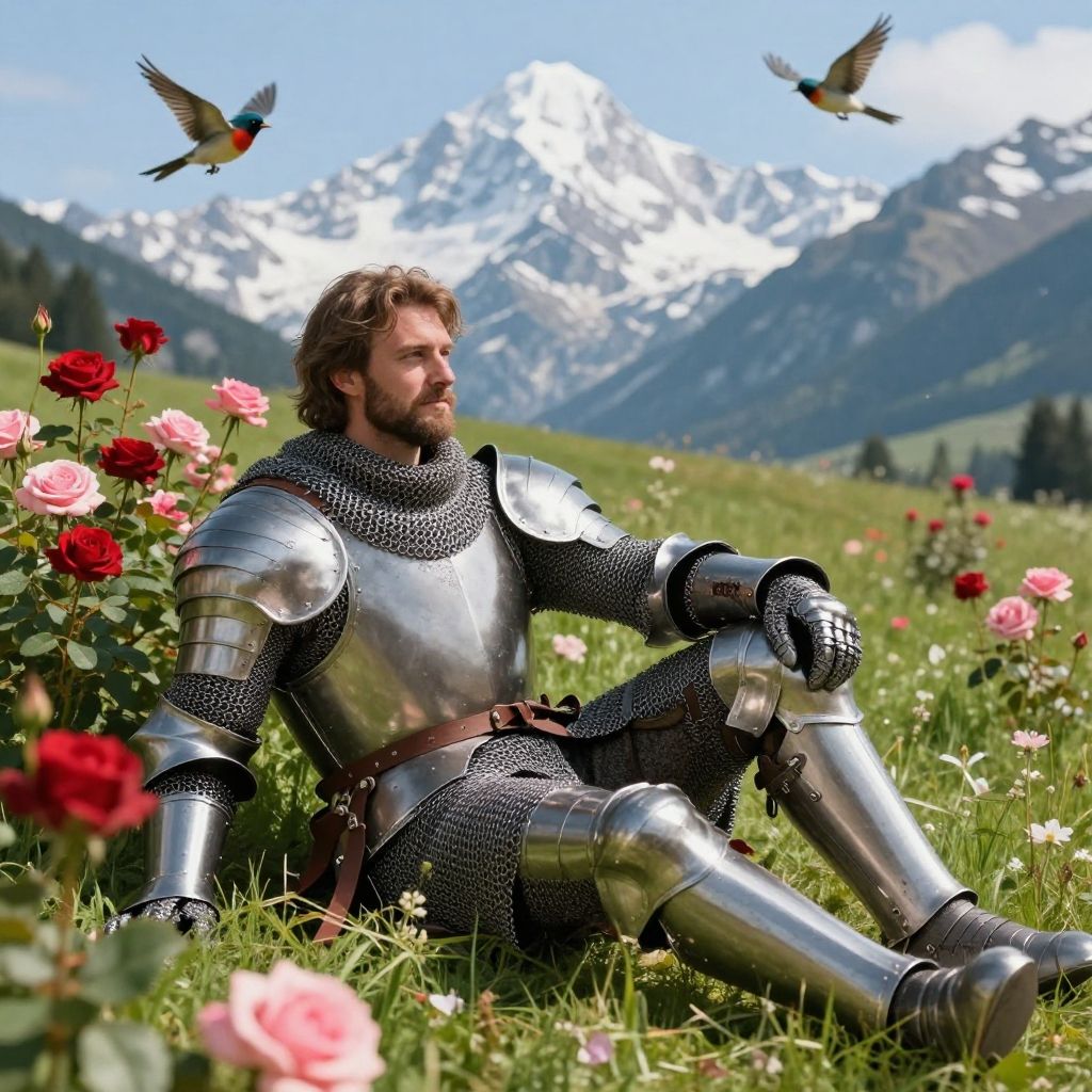 Brave Knight Resting in Rose Meadow