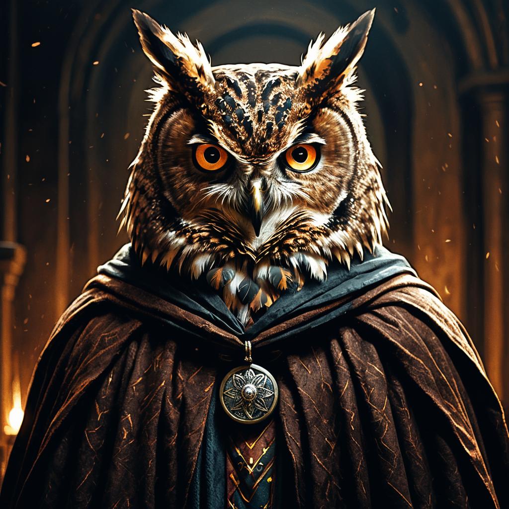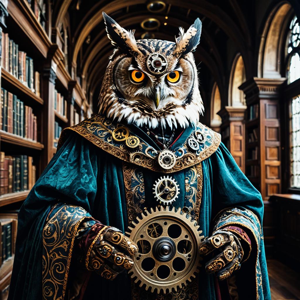 Clockwork Owl Mage in Ornate Renaissance Robes
