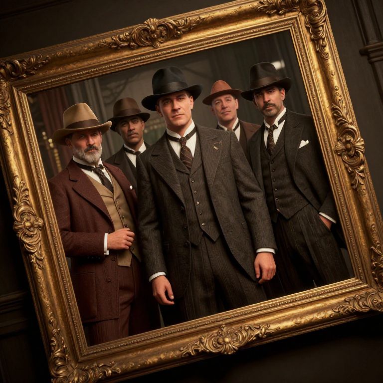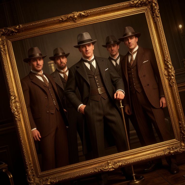 Tilted Frame American Criminal Gang, 1920s, Gangsters, highly detailed, very detailed, octane render, beautiful lighting, 8k,