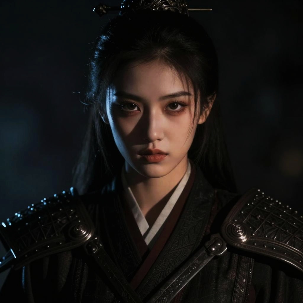 Dramatic Warrior Portrait with Glowing Eyes