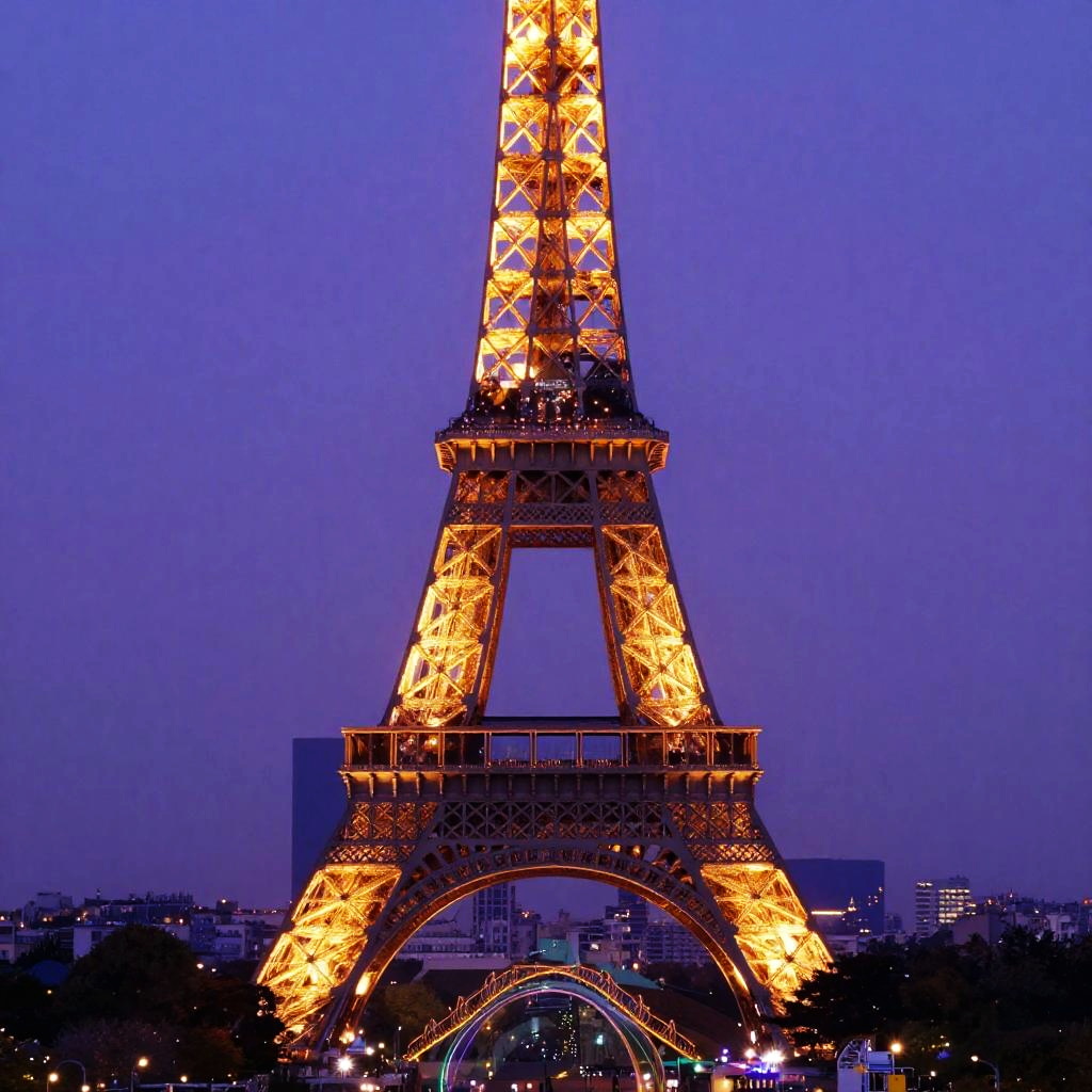 Neon Eiffel Tower Abstract Cityscape