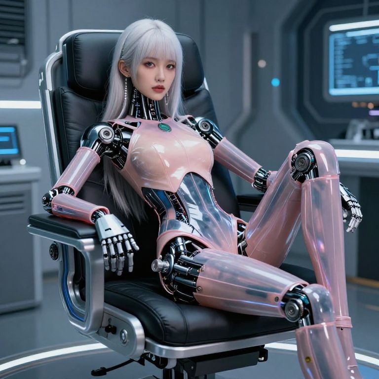 Hyper-Realistic Droid in Cyber Chair