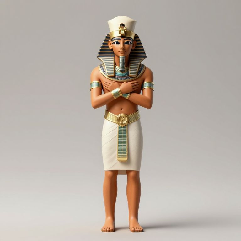 Script small ancient figurine, clay statuette of the phoenician god Melqart as a bearded man, found in a pile of rubble, archaeology, digital painting,
