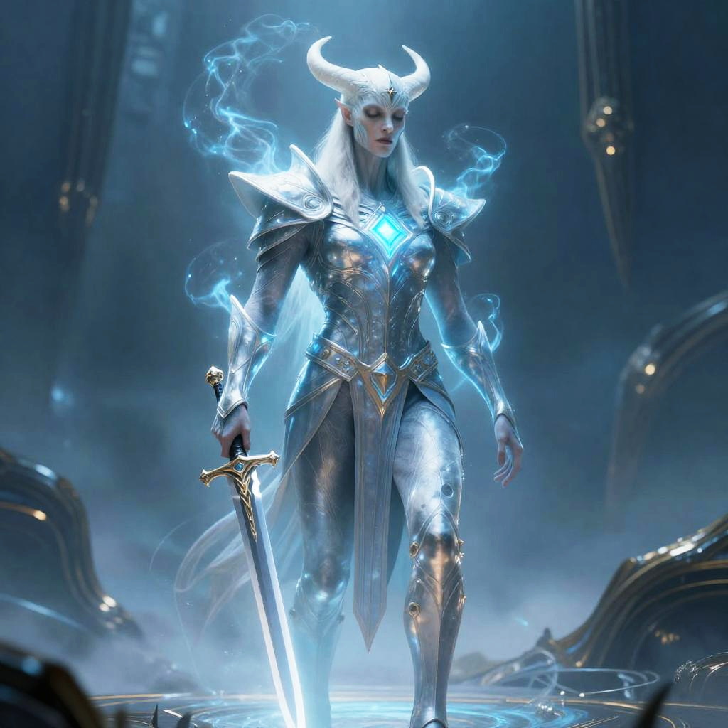 Armored Horned Paladin with Glowing Eyes