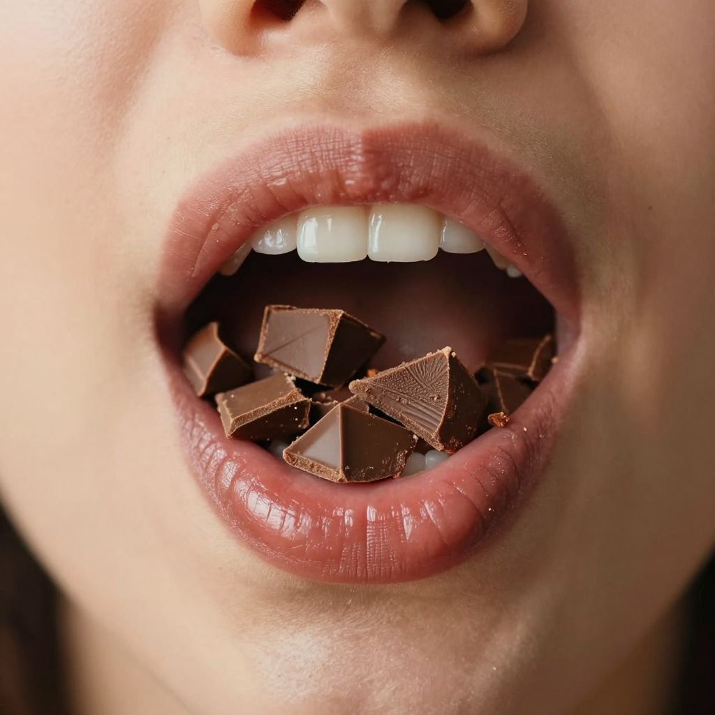 Photorealistic Close-Up of Chocolate-Filled Mouth