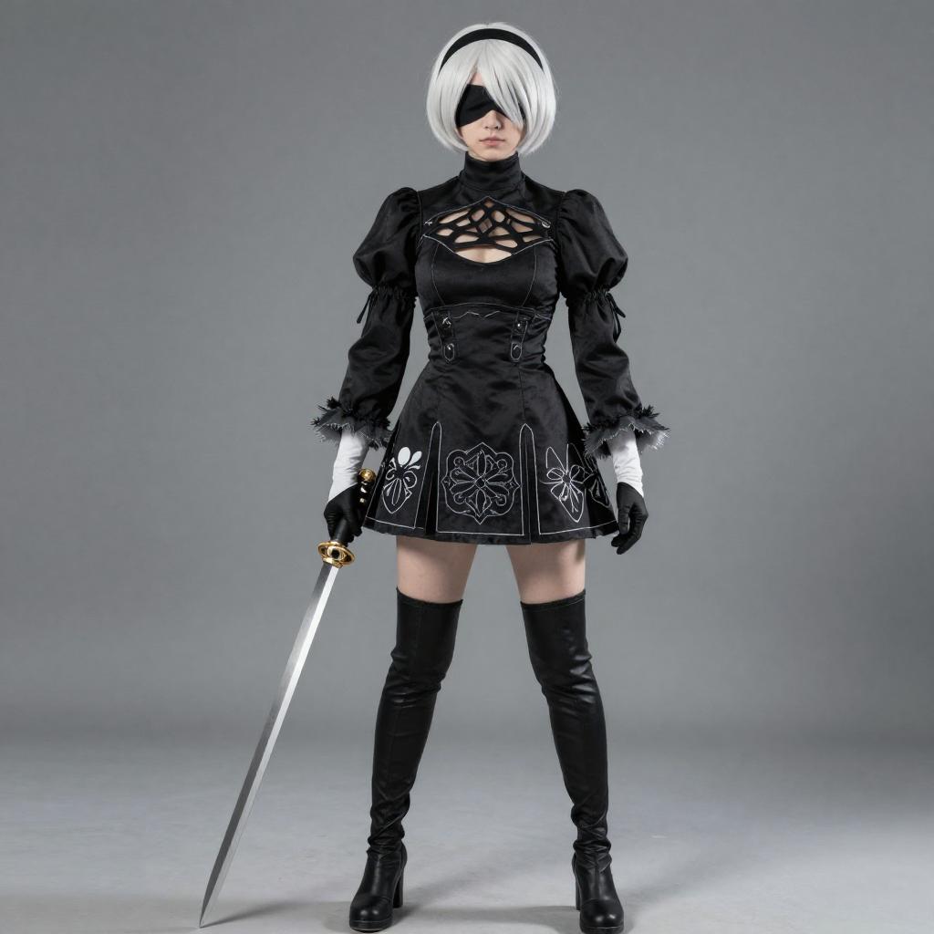 Cosplay realistic photo of 9s (nier:automata). Costume clothes