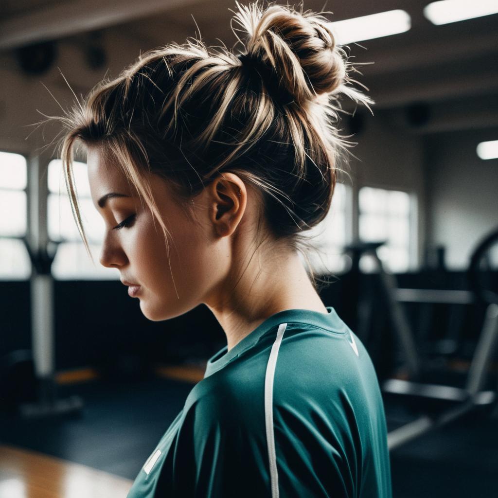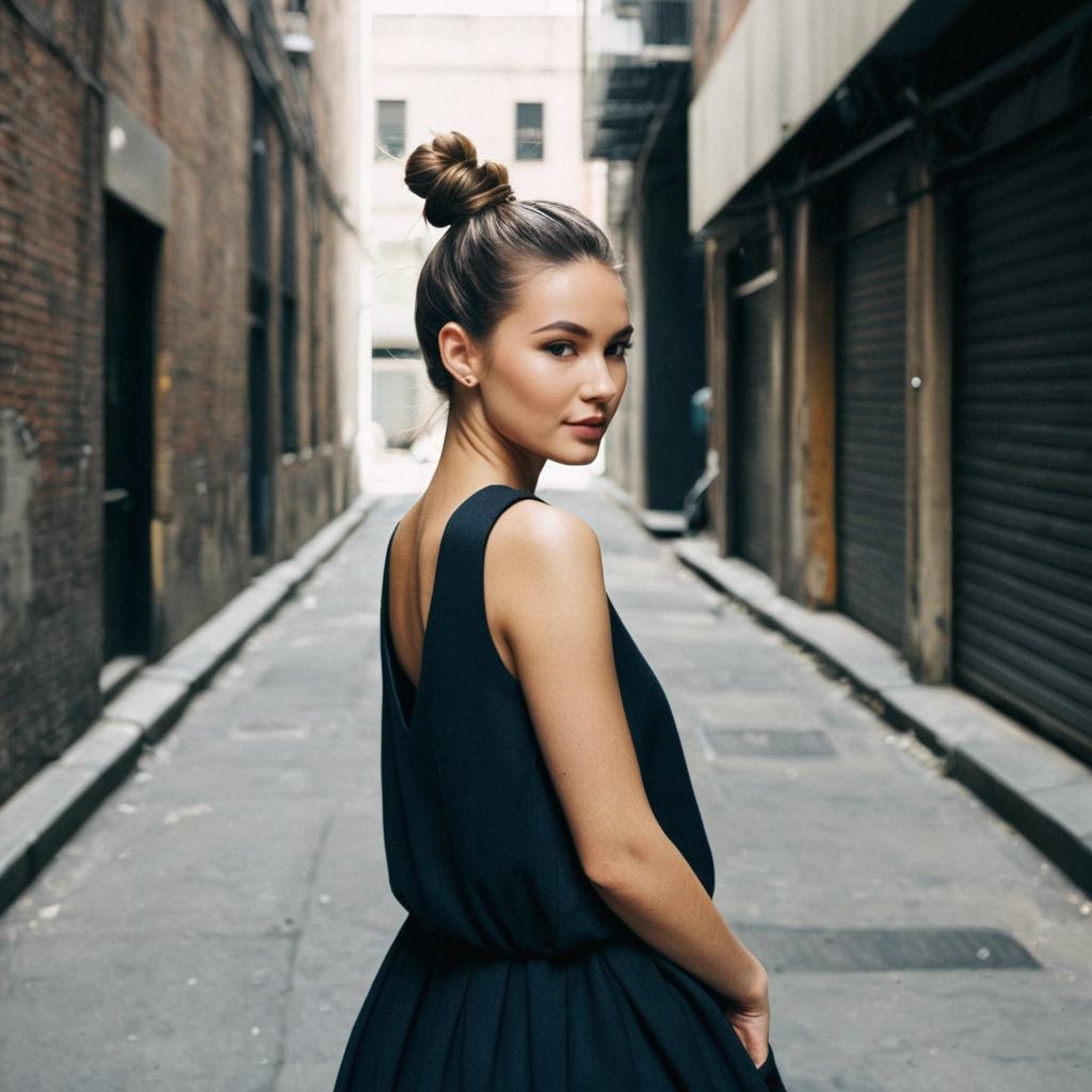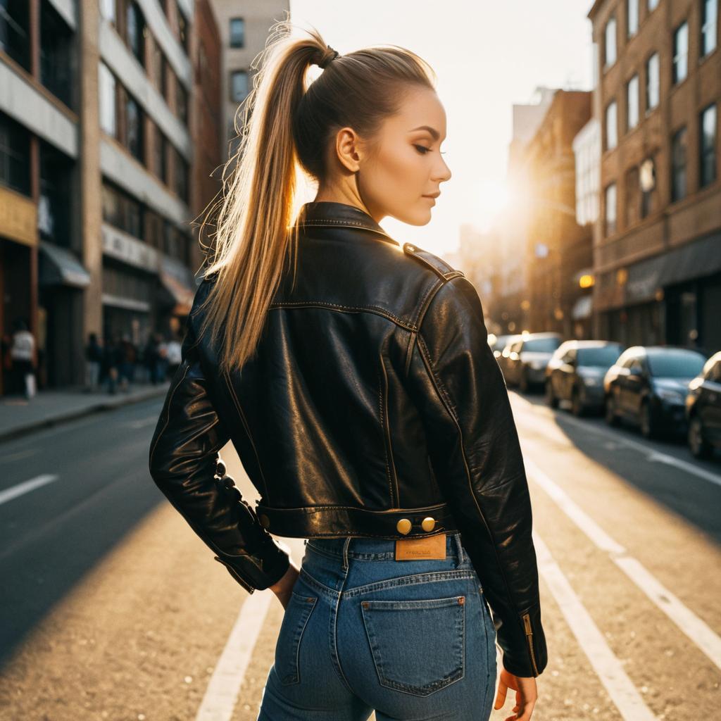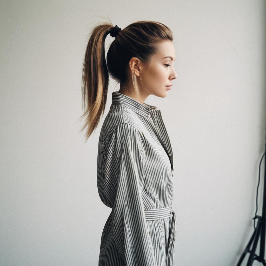 High Ponytail hairstyle on female dancer, wearing athleisure wear, in urban street, captured in fashion editorial style with natural sunlight.