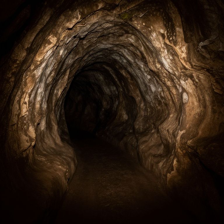 Ancient Art deepest cave in the world, small tight claustrophobic spaces, dark, winding tunnels underground, intricate details, no lighting,