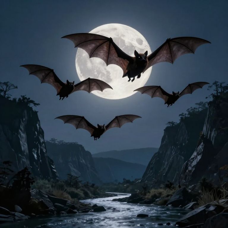 Nocturnal Bats Soaring by Moonlight