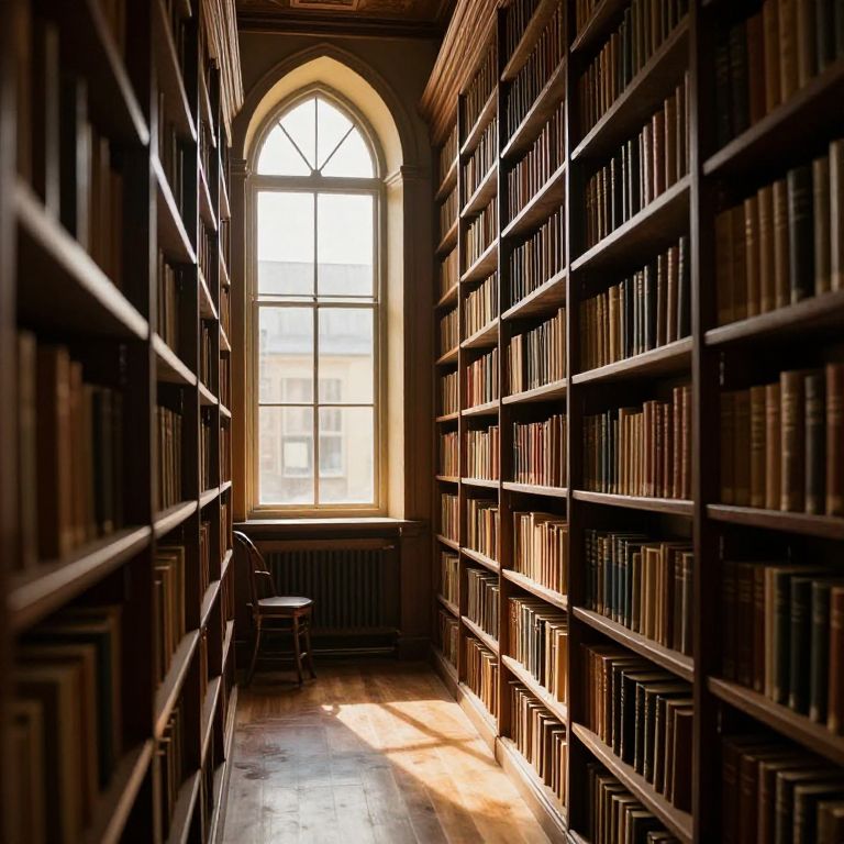 Amidst the hushed whispers of ancient spines and the golden glow of sunlight filtering through arched windows, this library becomes a sanctuary of timeless wisdom, where each book beckons travelers to explore the infinite corridors of history, knowledge, and the quiet solitude of introspection.
