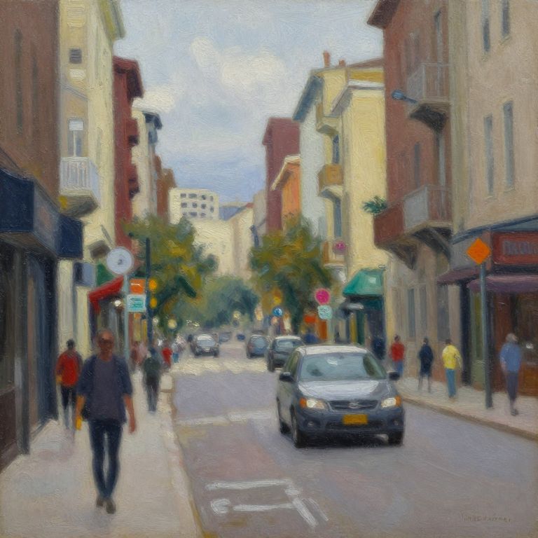 Oil Painting of City Street Scene