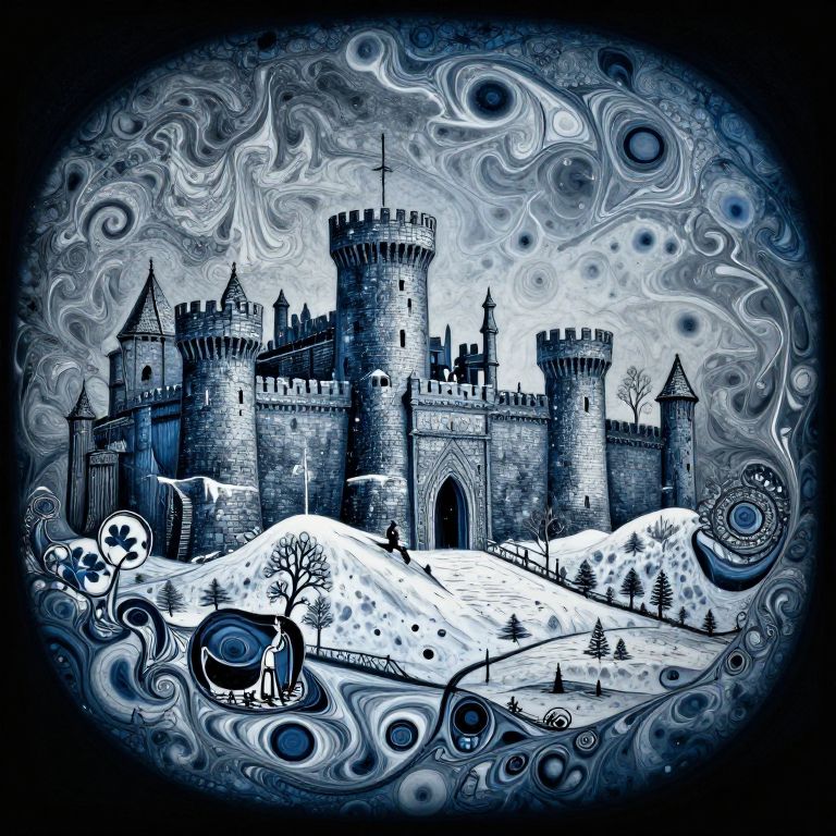 Stroke A beautiful scene of Winterfell in the form of Turkish ebru marbling, in Westeros, by Yasemin Baydar,