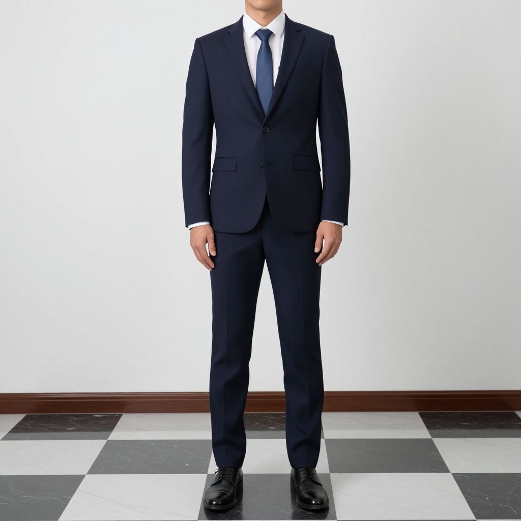 Outfit Slim Costume, man in a suit standing in a room with a checkered floor