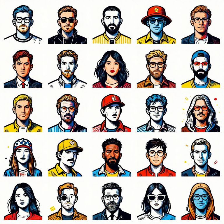 Masterpiece A set of 25 iconic persons and moments of 21st century, graffiti style, doodle style, Pop art, Neo-expressionism, Urban art, Contemporary art,