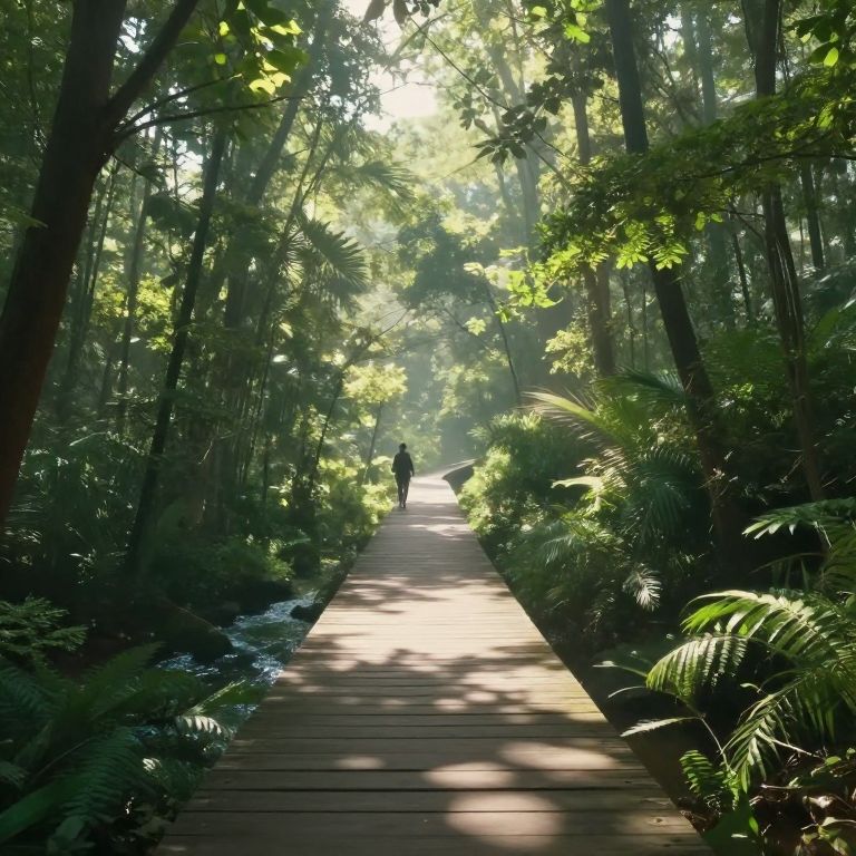 Suspended between earth and sky, this ethereal pathway invites wanderers into a realm of serenity and wonder, where the gentle rustle of leaves and the soft hum of distant streams intertwine with the timeless dance of light and shadow, evoking a profound sense of freedom and connection to the infinite.