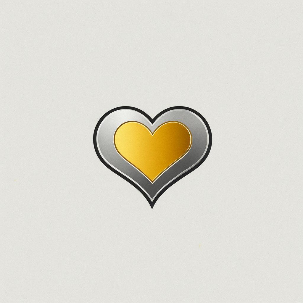 A golden yellow and silver semi-heart-shaped logo symbolizing accessories. Simple and elegant, easily converted to vector artwork, designed with dominance of gold, minimalist and refined
