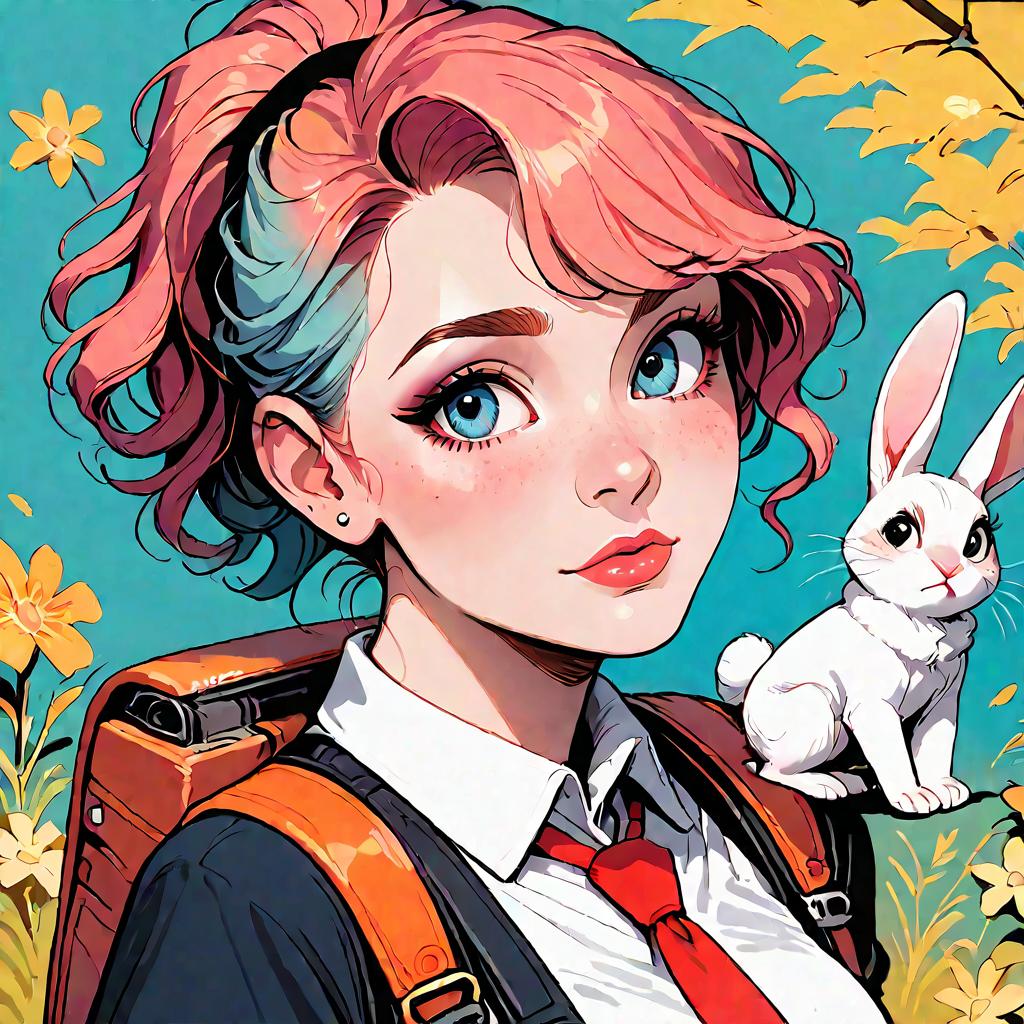 Score_9, in the style of Beatrix Potter, Rabbit with a backpack, toolset, going to fix the hillside
