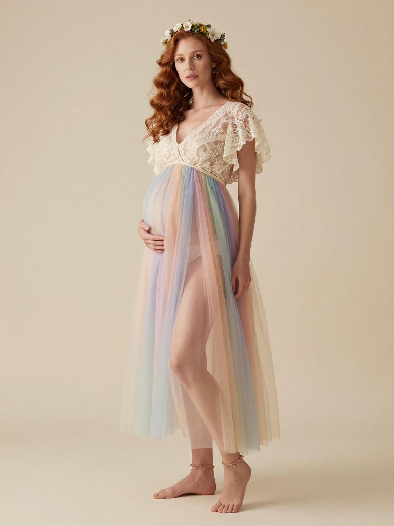 Pregnant Woman in Fairy-Inspired Maternity Dress