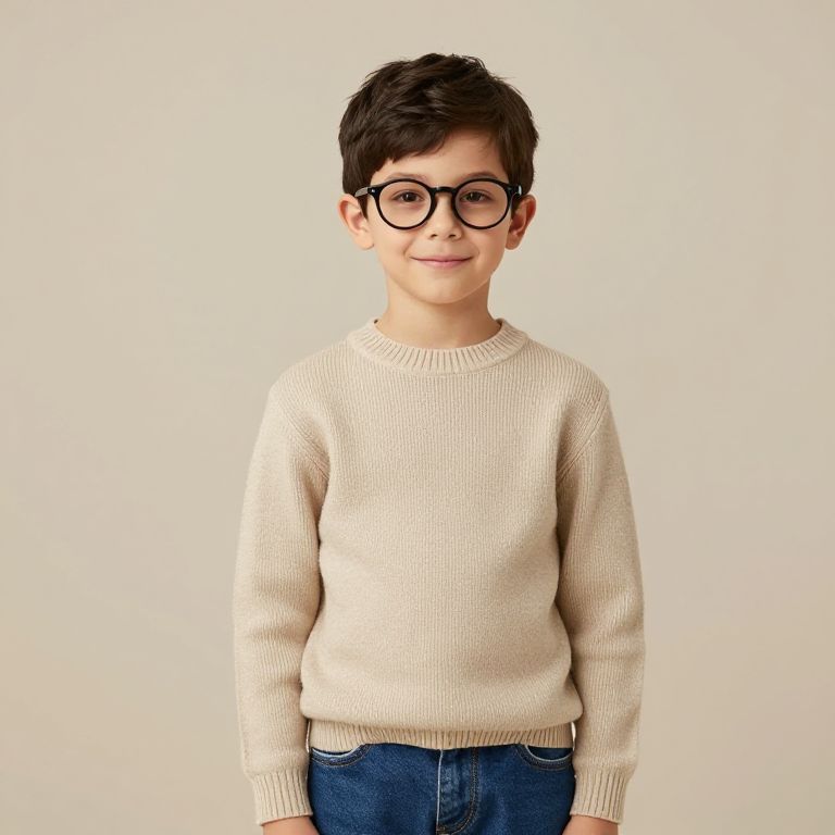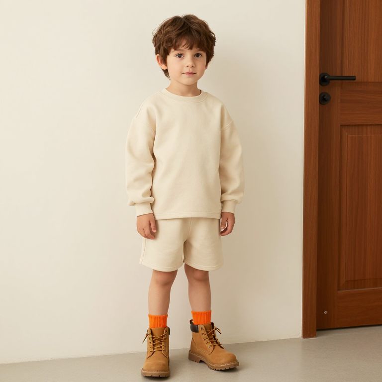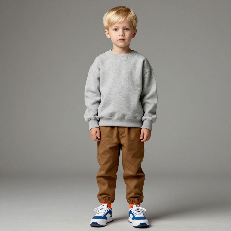 Boy in Beige Sweater and Pants