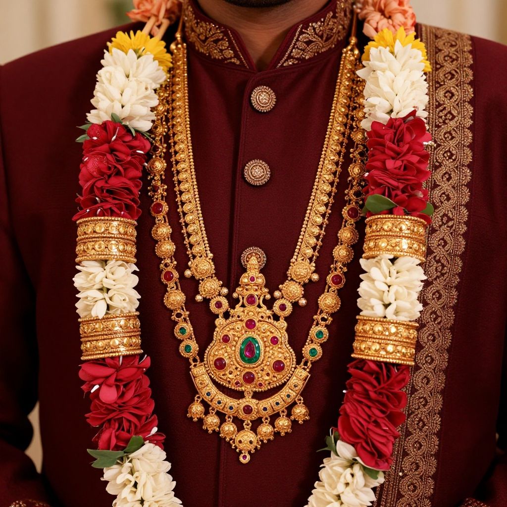 Elegant South Indian Groom Jewellery Close-up