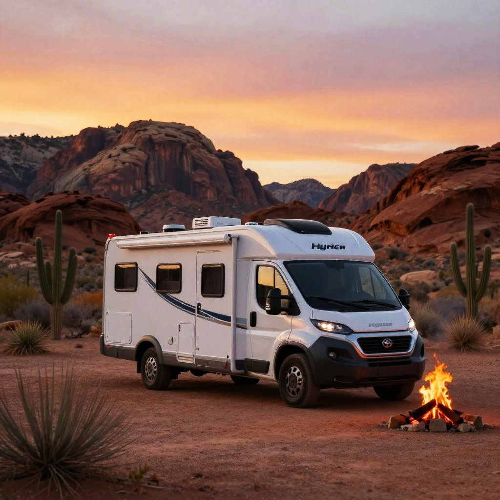 Hymer RV Desert Campsite Sunset