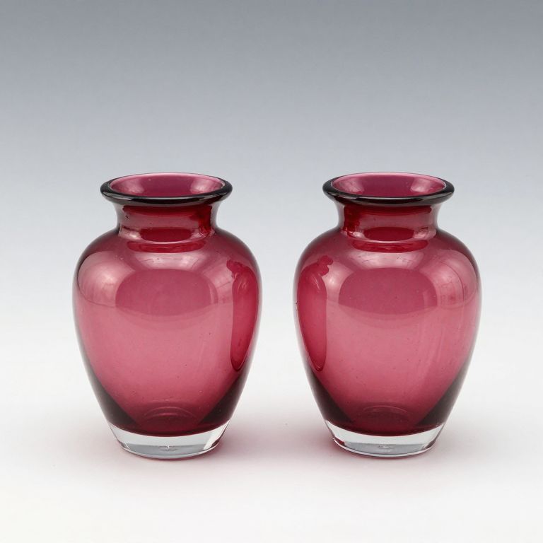 Pair MARY GREGORY Cranberry Glass Small Vases