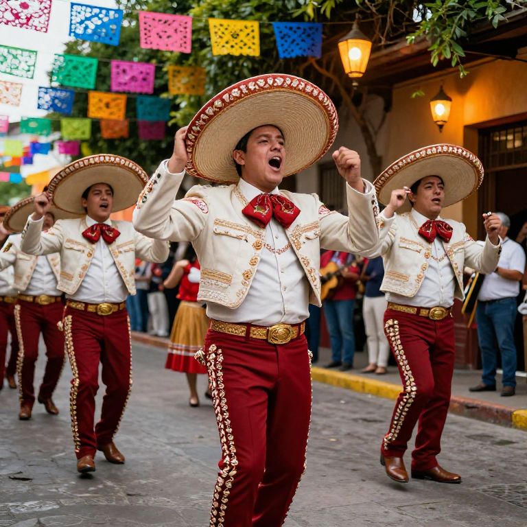Vibrant Mariachis on Festive Mexican Street
