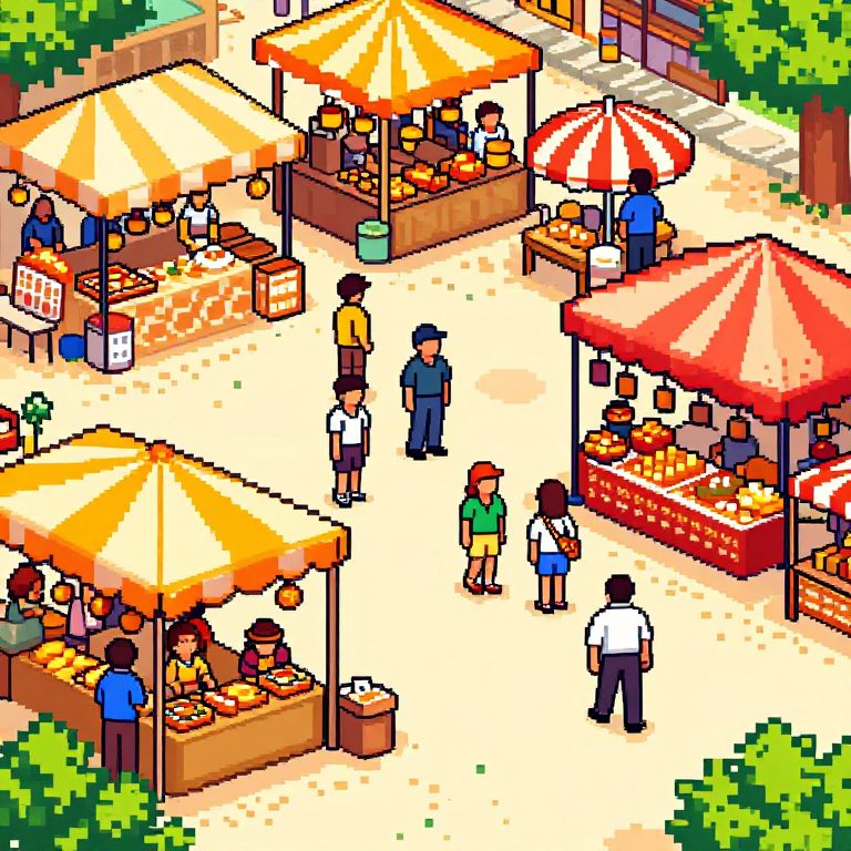 Vibrant Pixel Art Marketplace Scene