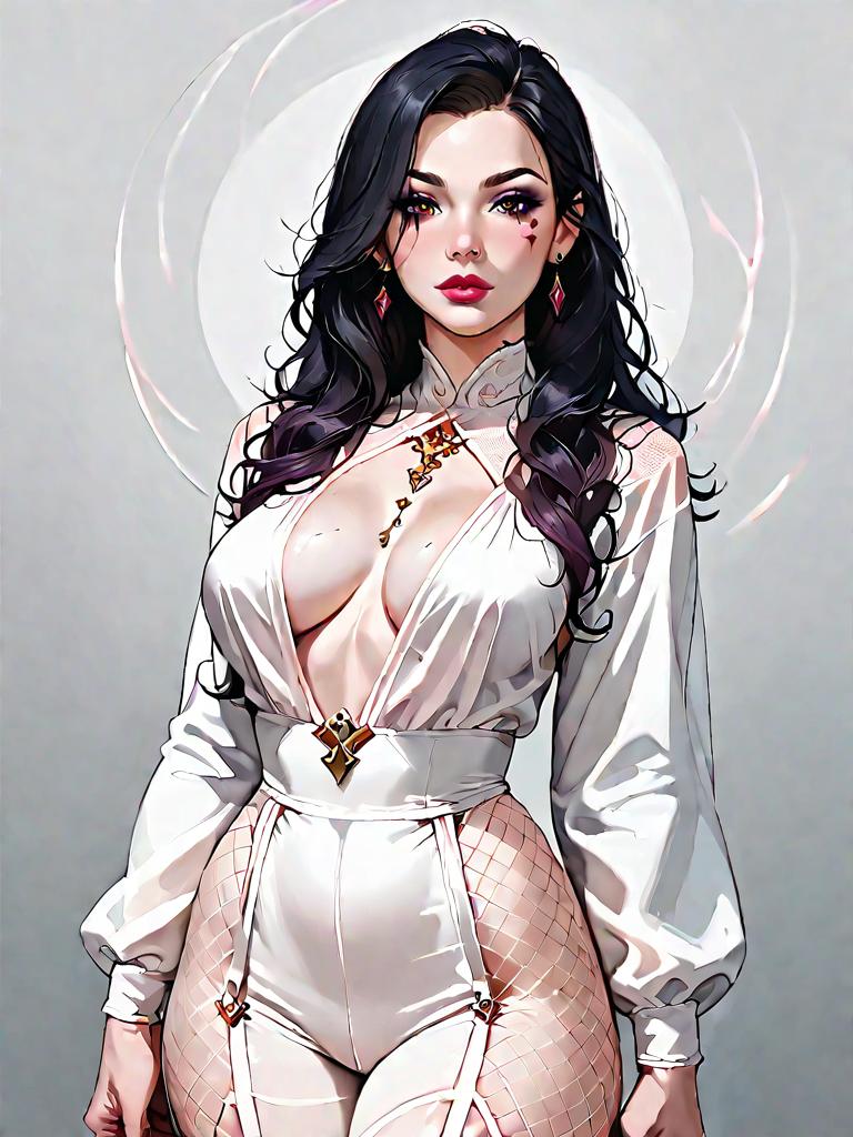 1girl, realistic face, Lingerie Mesh Set, deep burgundy mesh bodysuit, plunging neckline, intricate lace detailing, long sleeves, sheer back panel, scalloped edges, soft stretch fabric, luxurious and provocative.