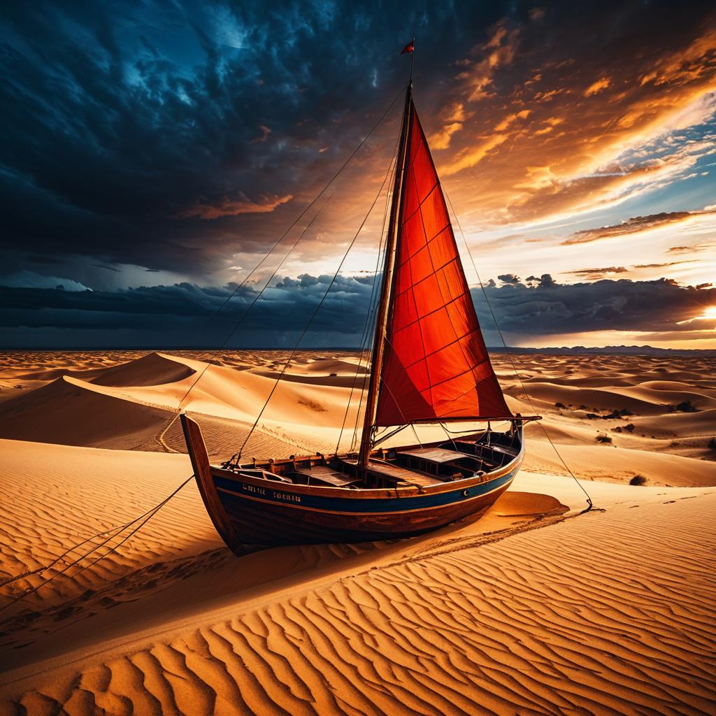 Cinematic Wooden Boat on Desert Dunes