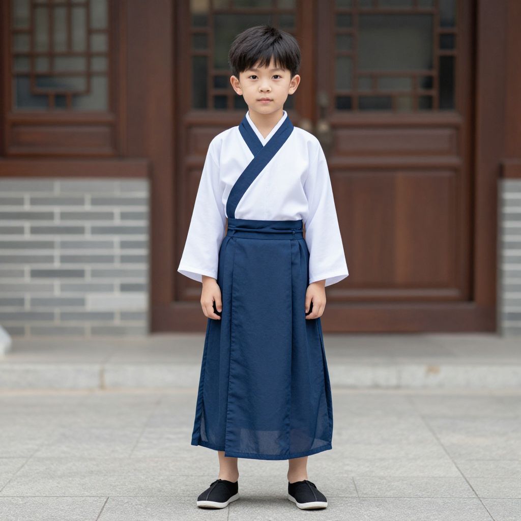 Popular Boy Costume, asian boy in traditional clothing standing in front of a building