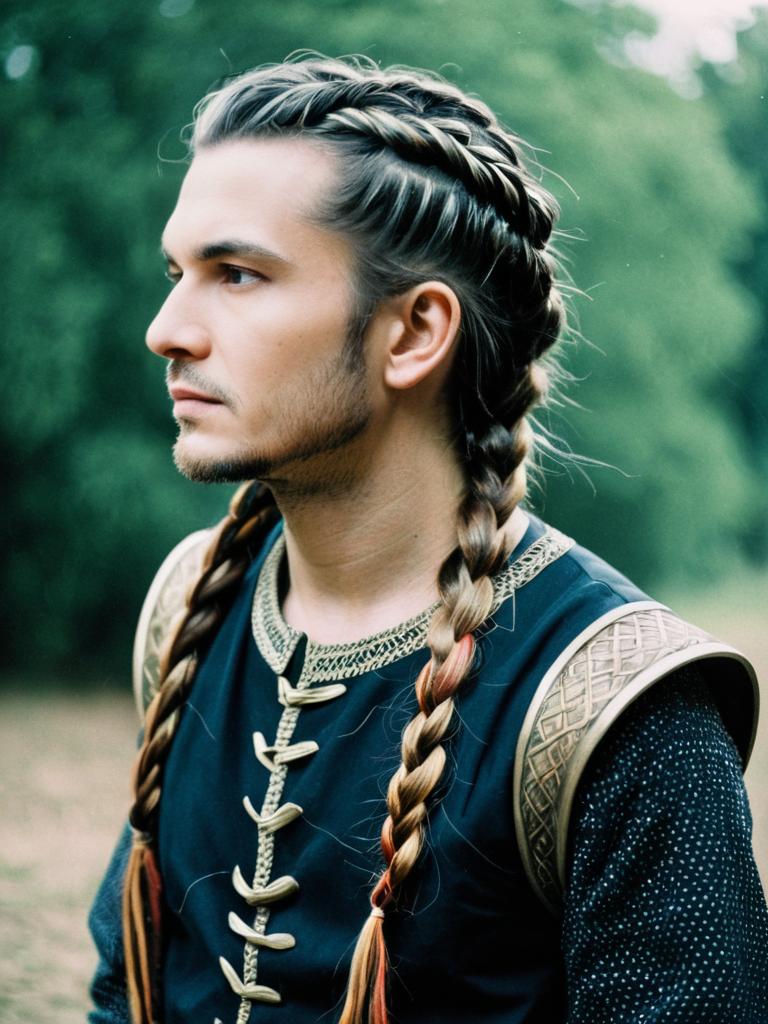 Man in Braided Hairstyle costume, cosplay editorial photography, photorealistic style