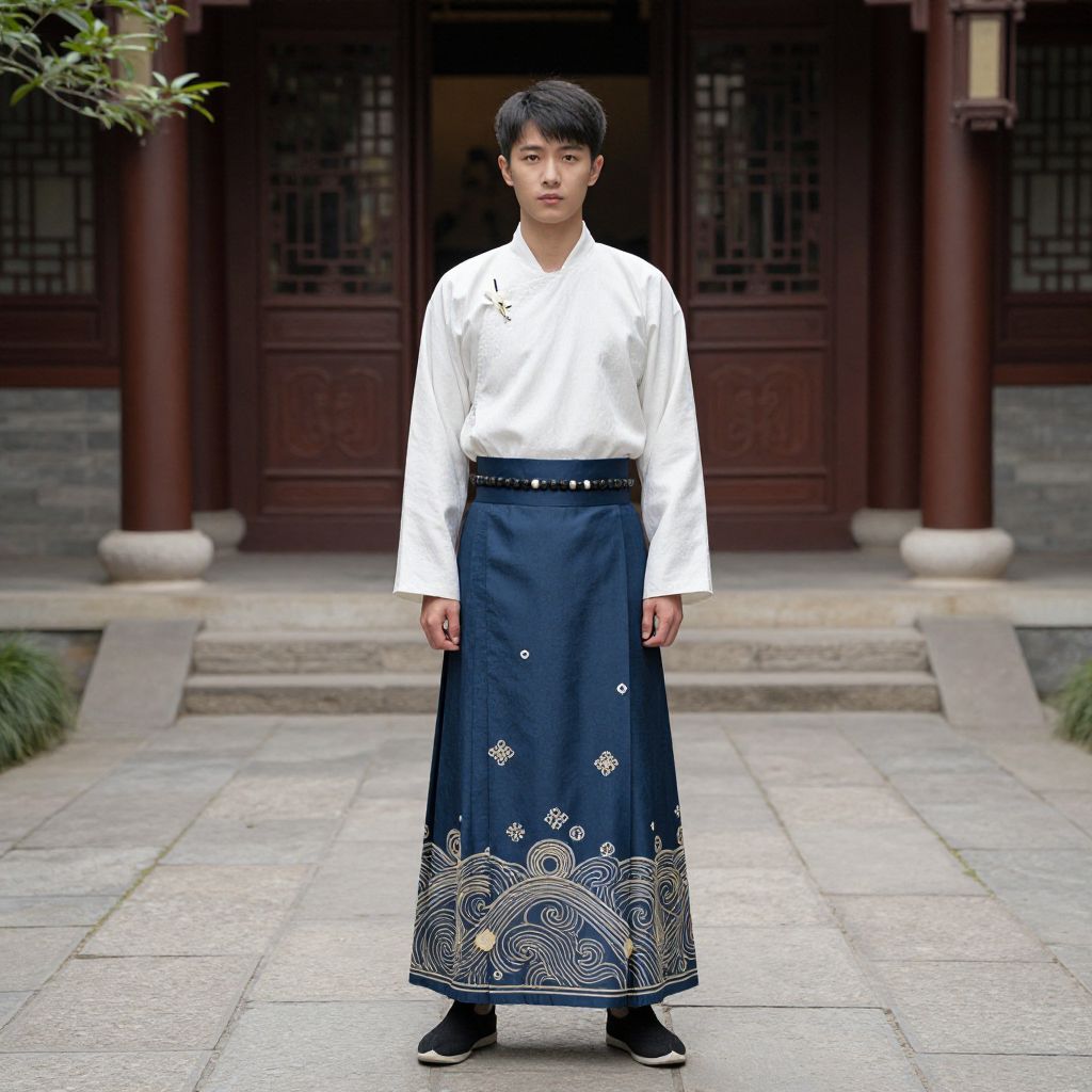 Zack Costume, man in a traditional chinese costume standing in a courtyard