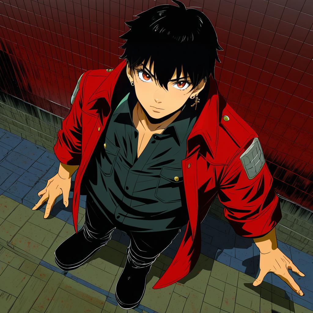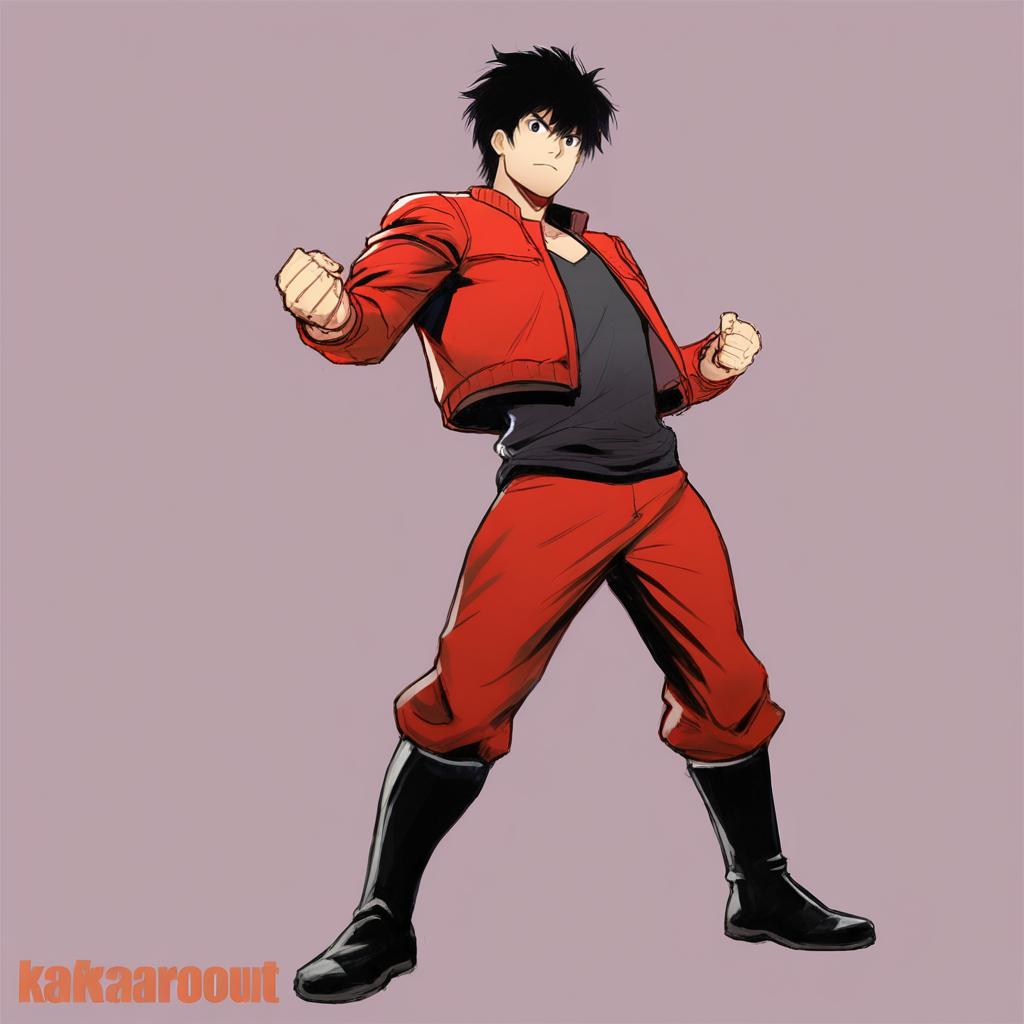 Kaneda shoutarou (akira), akira (manga), 1boy, black hair, short hair, red jacket, boots, by artist dokomon, leet