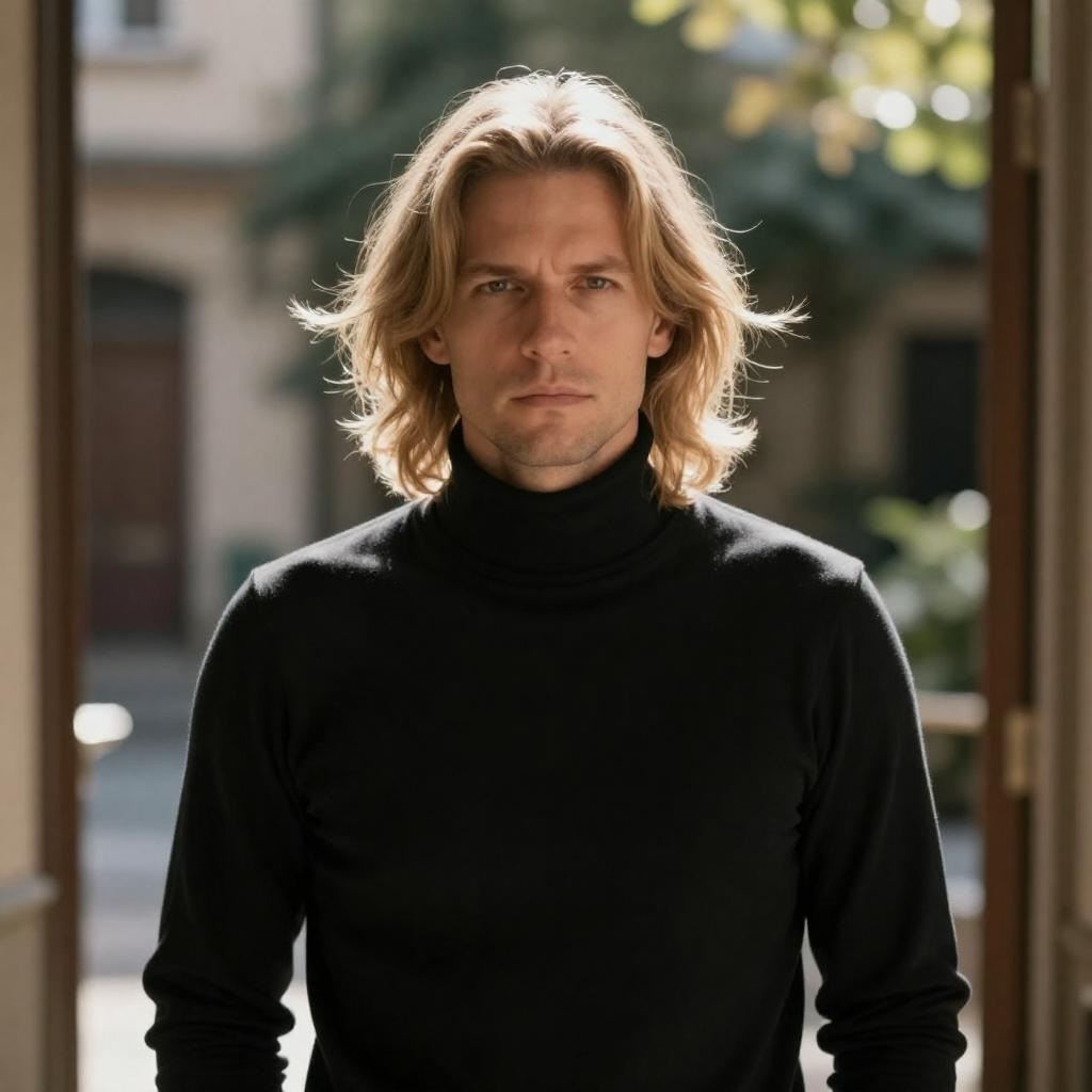 Intense Blonde Man Portrait with Bokeh