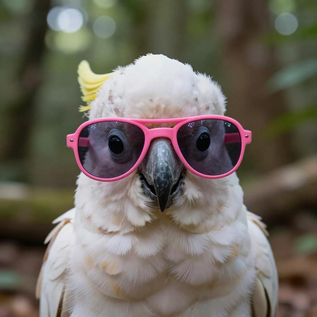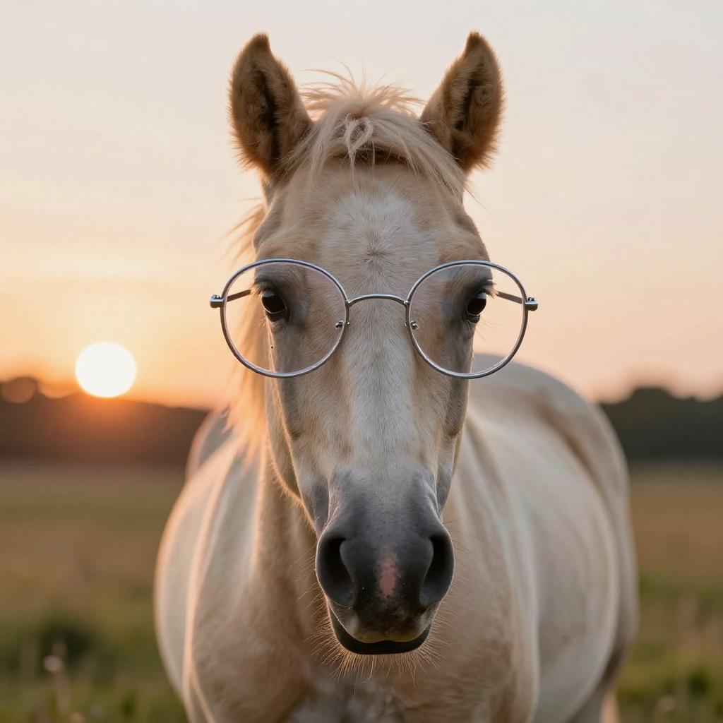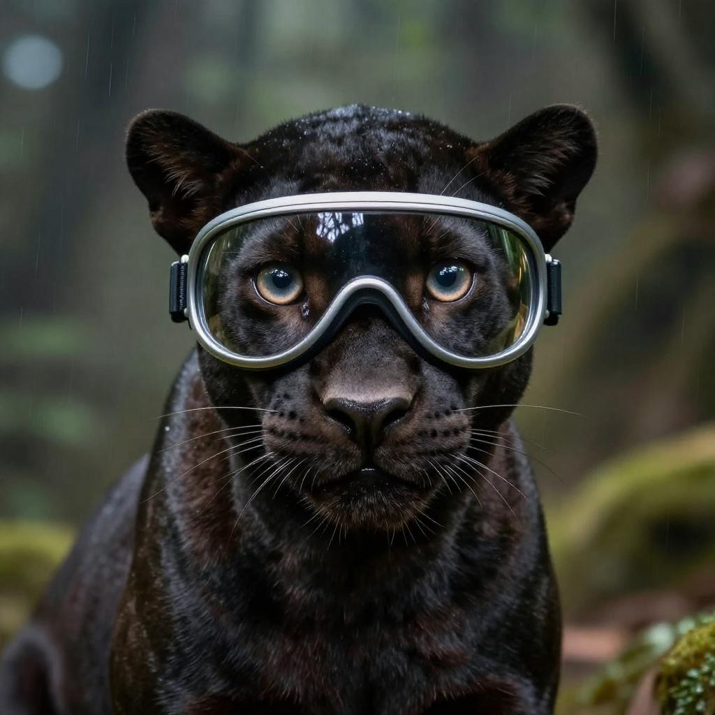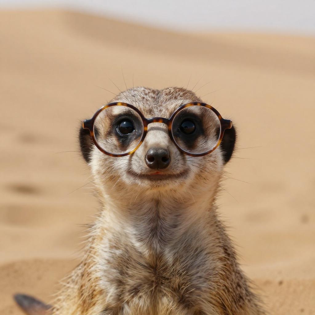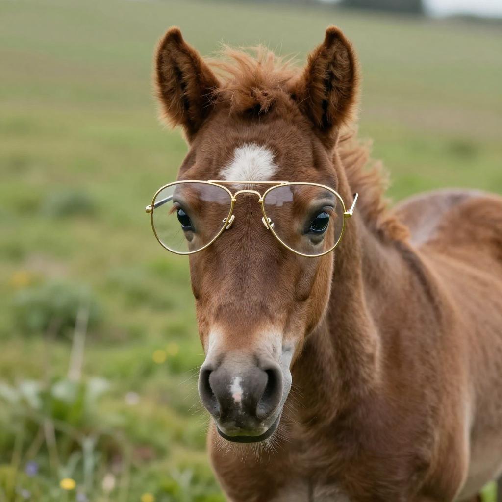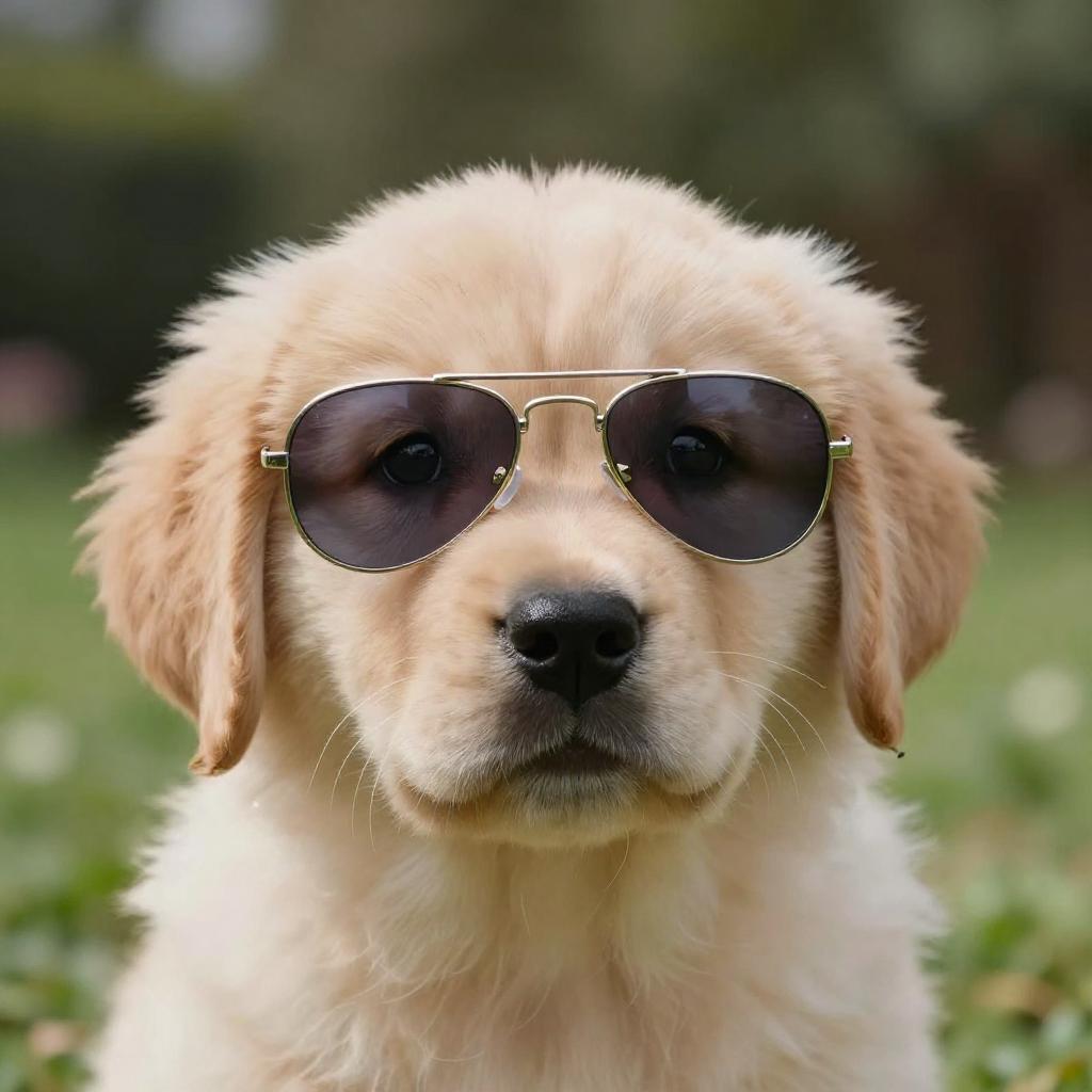 A close-up, playful portrait of a straight black and white Siberian husky pup, wearing matte black full-rimmed round glasses that make the eyes look wide and expressive. Soft, silky fur detail, shiny black nose, crisp whiskers. The background is snowy forest softly blurred, shallow depth of field for clear focus. Cheerful, humorous vibe, photoreal detail, natural color, subtle film grain, soft studio lighting.