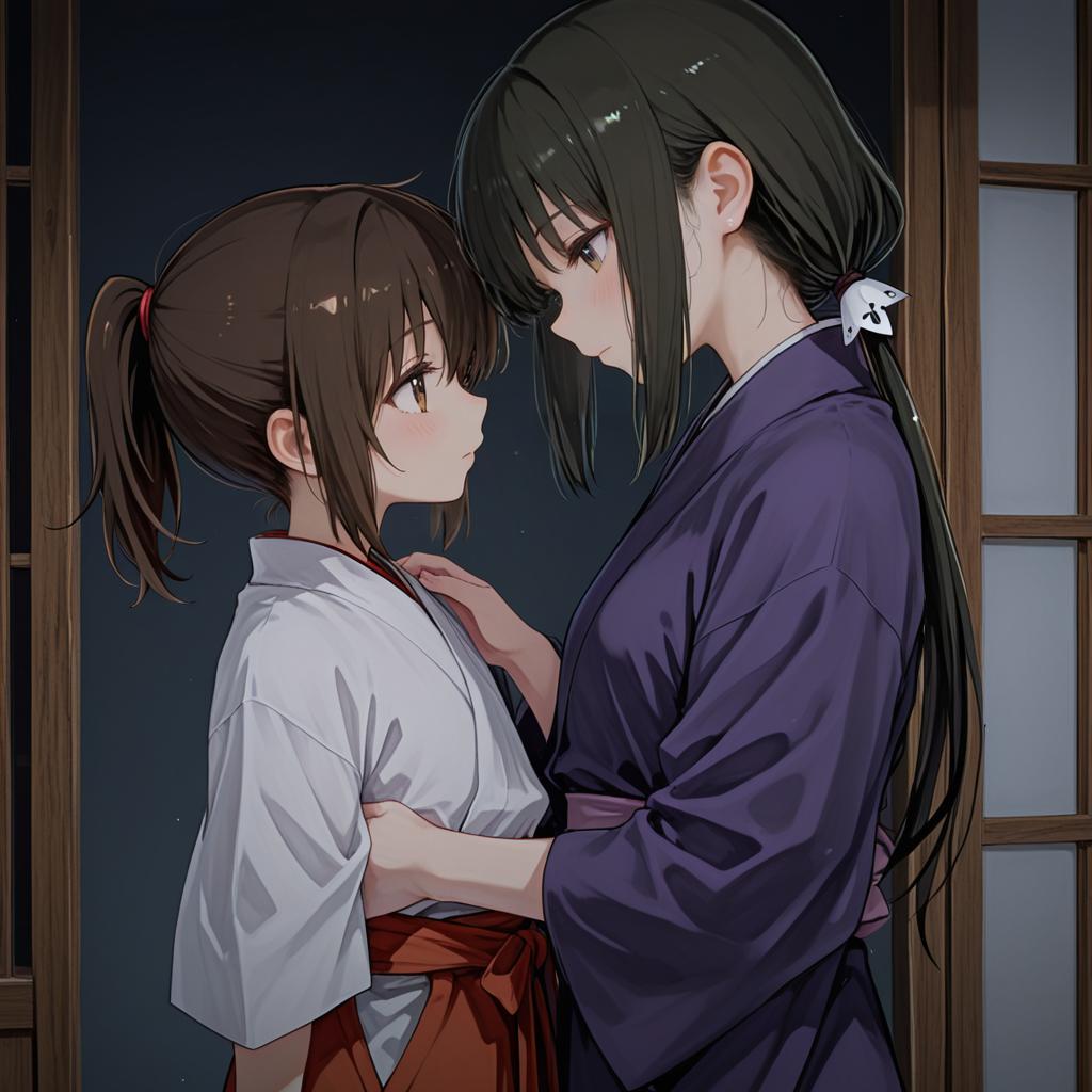 Ogino chihiro, sen to chihiro no kamikakushi, 1girl, brown eyes, brown hair, long hair, ponytail, by artist toshizou (0714), dark_illustrious