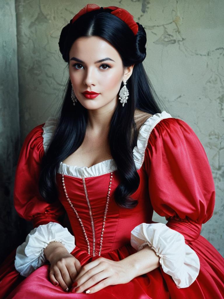 Realistic Seated Maiden in Red Dress