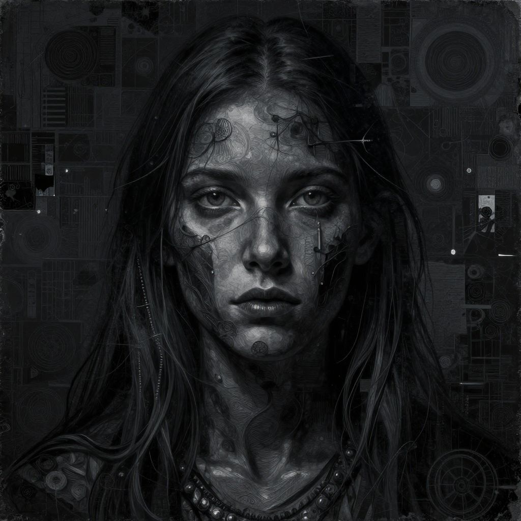 (( Dark colors, intricate details, realistic style, tar paintings, dark paintings, digital illustrations, mixed media pieces, deep shadows ))