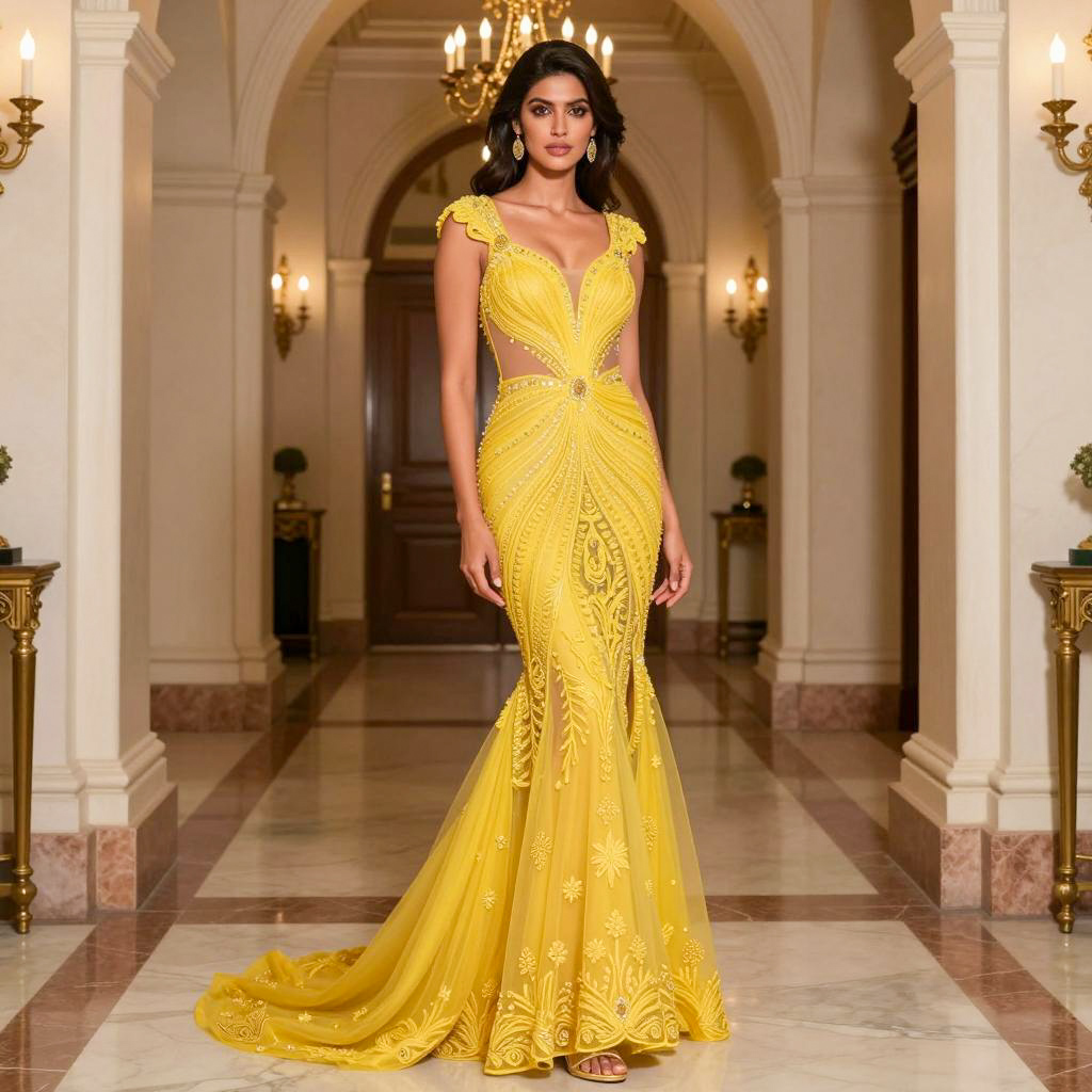 Fashion model illustration in contemporary Art Deco style, featuring sleek lines, geometric shapes, and a rich color palette against a luxurious marble hallway, inspired by Art Deco masters –ar 1:1 –q 2 –stylize 100