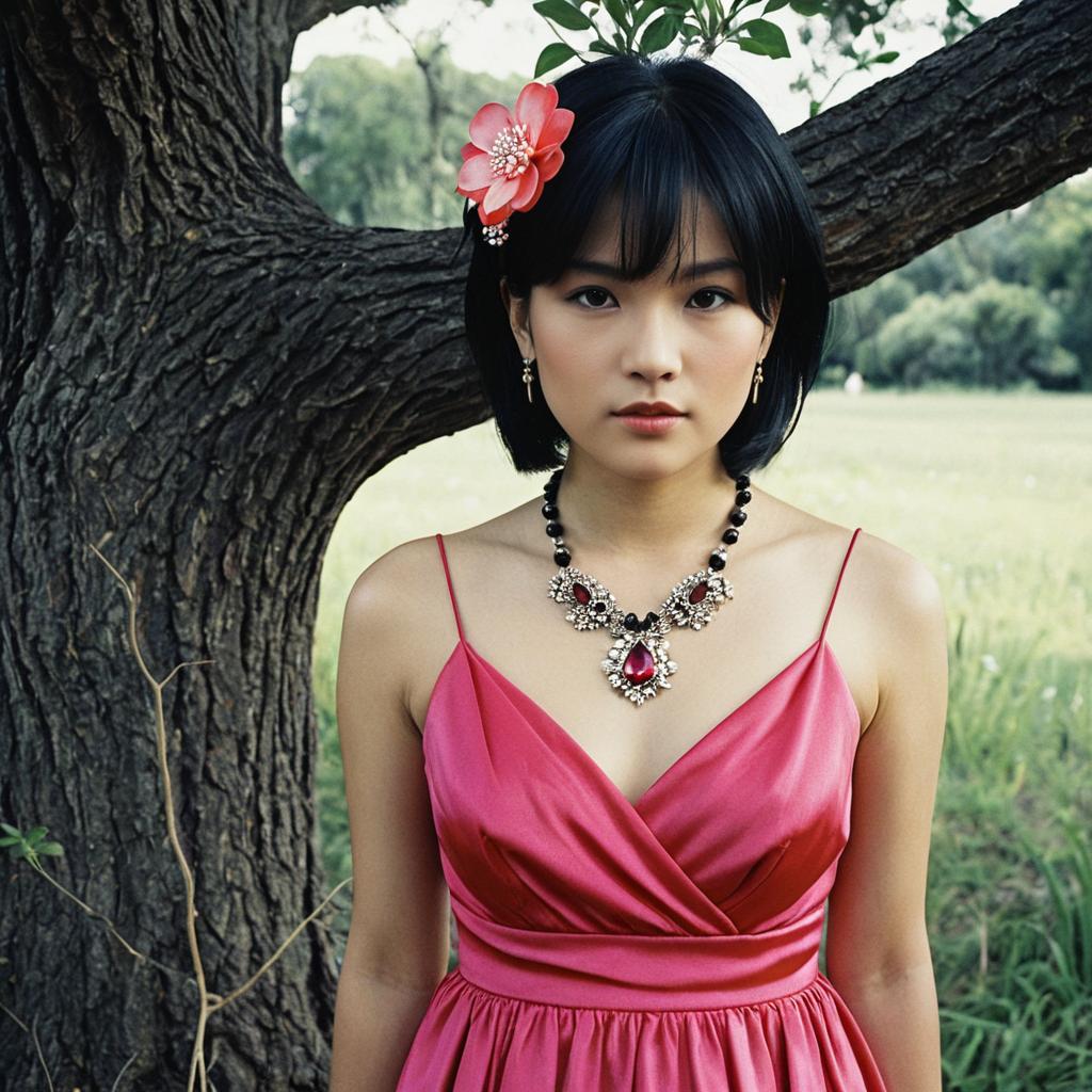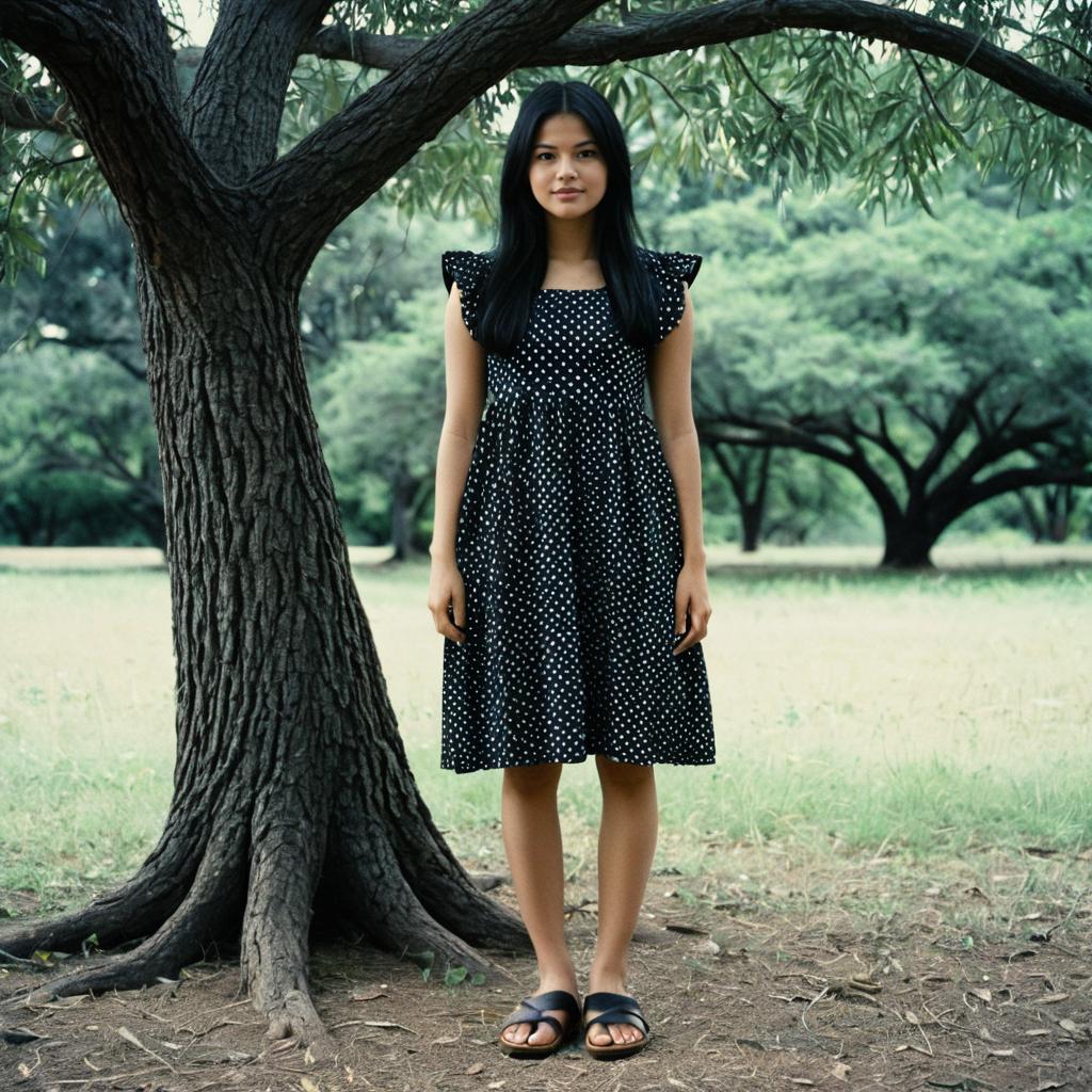 Woman in Traditional Dress Standing by Tree